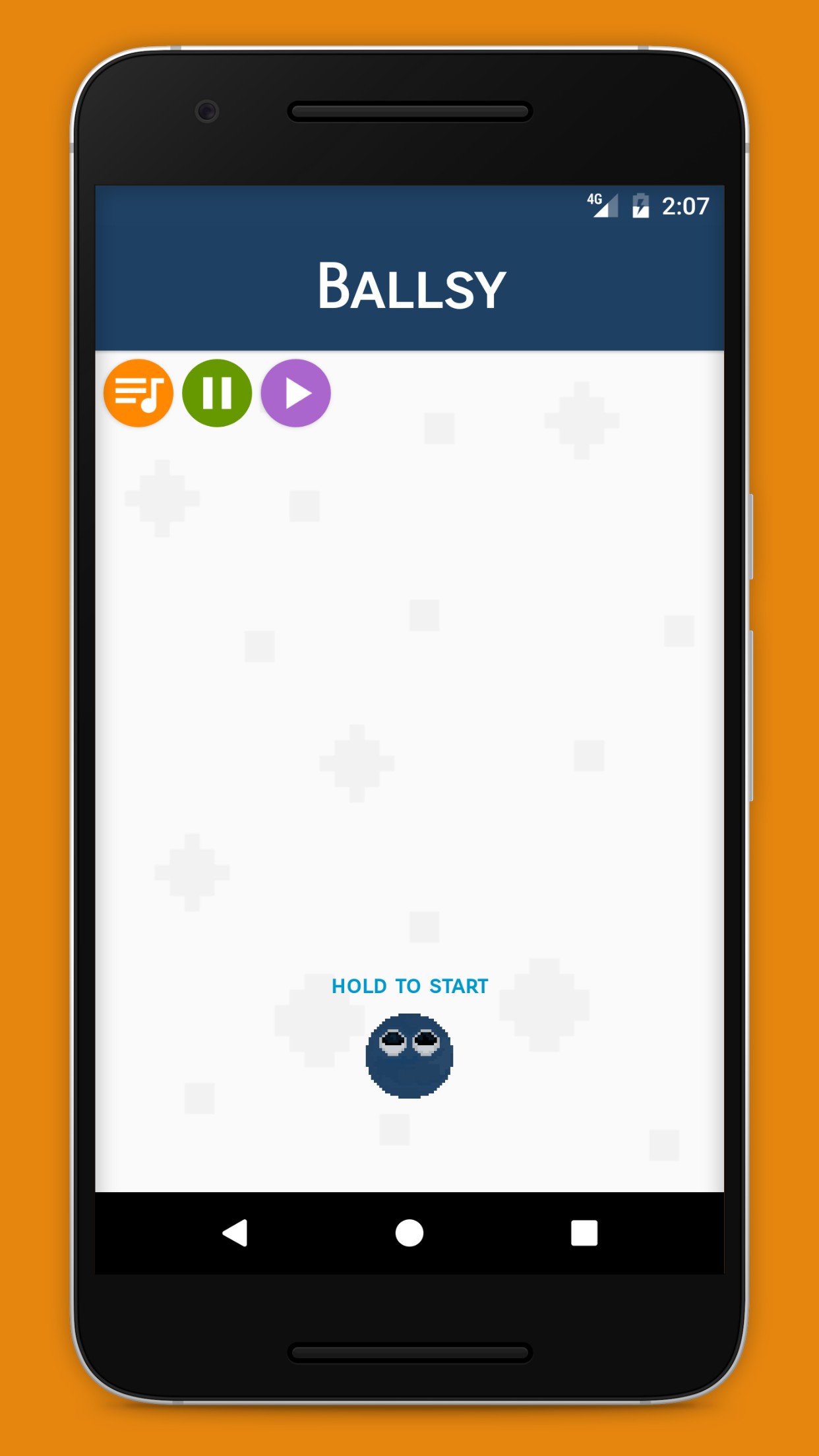 Create your own personal gaming experience by choosing any song on your phone to play as a backtrack while you are playing Ballsy. Press the ORANGE button, scroll through your songs, pick your favorite, and play the game with some tunes playing in the background.