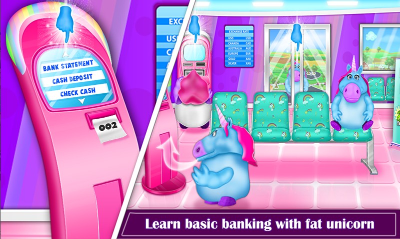 For those want to learn how banks work! This is a basic and simple game in which your favorite Mr. fat unicorn will guide you basic steps involved in banking including ATM simulations and bank cashier management along with money including credit & debit card working. Payorder & bank draft.