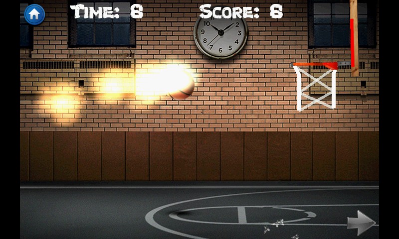 Basketball fire is the most addictive basketball game! Basketball fire brings the most popular street basketball game to your mobile! Basketball fire simulates the realistic physics and features great graphics, nice street court game environment and your very own virtual hand to shoot some hoops. Basketball fire is easy to pick up as well. All you have to do is flick the ball to any height, speed and power to get it into the hoop. Shoot as fast and accurate as you can in limited time to make a high score.