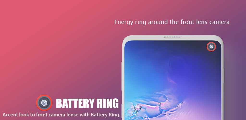 Battery ring app allows creating ring around the camera lens indicating current Battery level. its also adds accent look to your front camera lens.