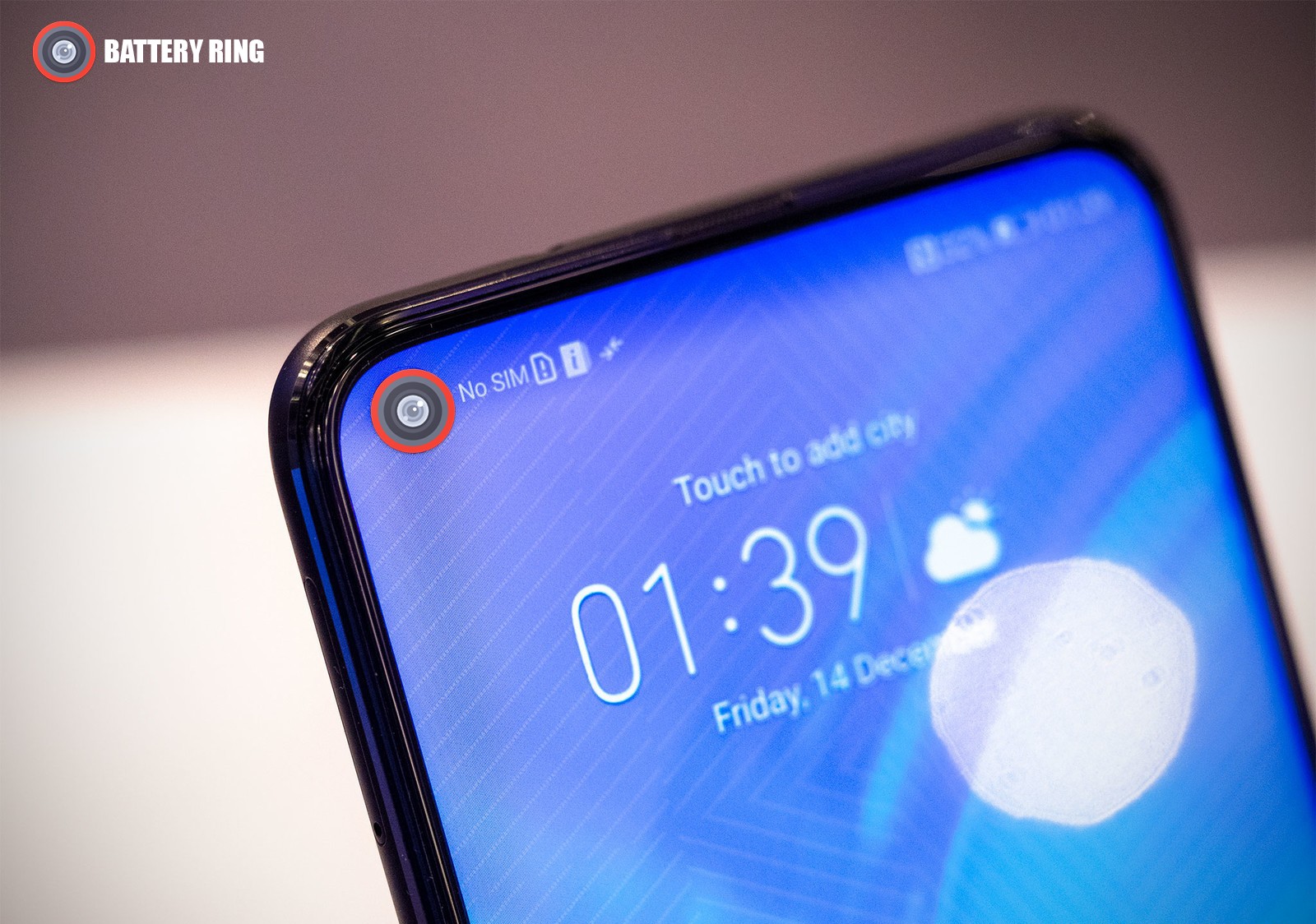 On full charge, it creates 360 degree energy ring around the front camera lens.
