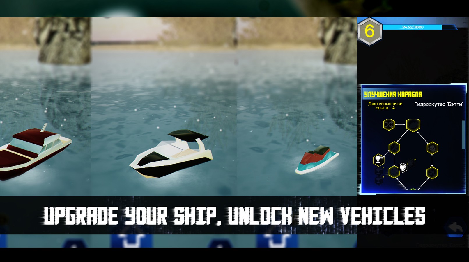 FLEET-Unlock new ships and abilities, put improvements that will change your gameplay. The further you go through the game, the more opportunities there are to use abilities. Put a Flamethrower on your ship, shoot a few EMI charges and leave booby traps as a surprise - you have a lot of options, have fun.