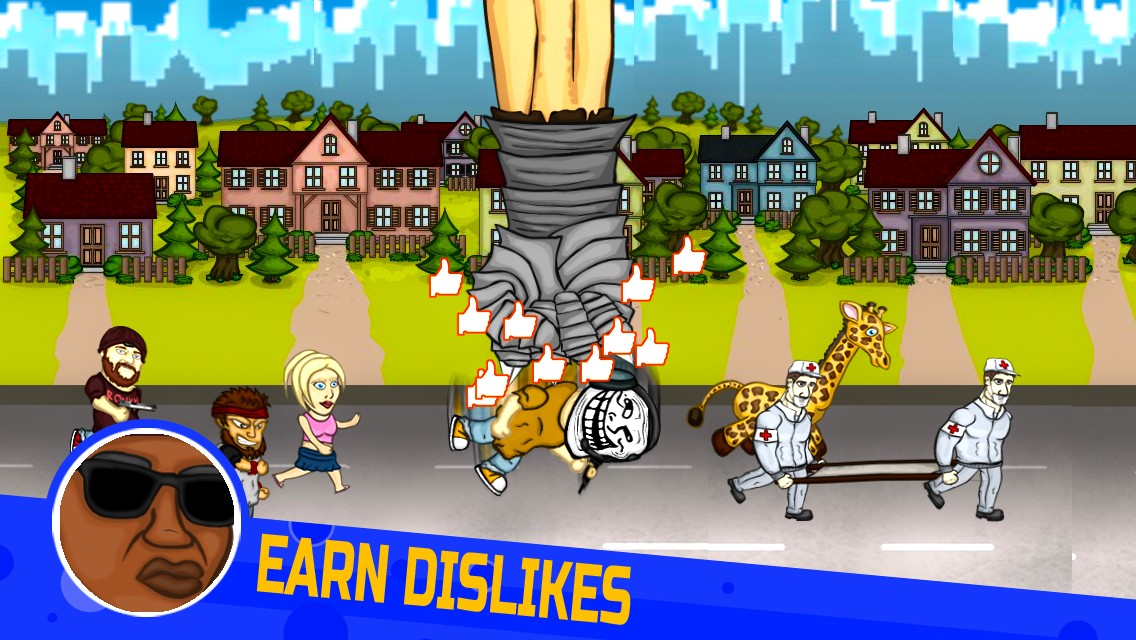 Punch Troll Face Meme is a troll face game perfect fit for stress relief. The gameplay is very simple but addictive: You punch out the unlucky troll as far as you can. This troll face meme will bouncing off the fans of PewDiePie or falling on the ground.If you hit him at the proper strength, the memes may hit balloons which will make him fly higher and earn you more likes or dislikes.Use this likes, you can buy upgrade or unlock skill or unlock skins. While the troll flying, you can use skills to hit him or trigger other magic effect.