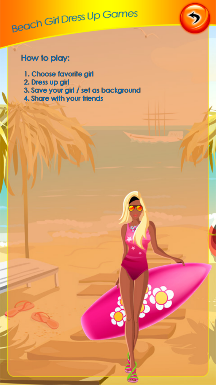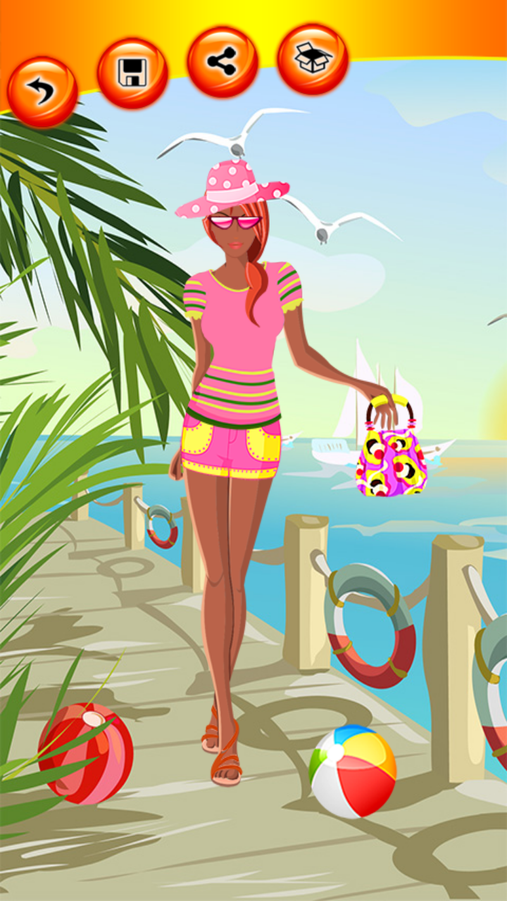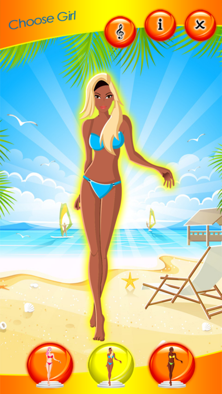 Summer is here, lovely sun is shining. Are you ready for the summer holiday on some tropical beach? Go on, but take with you your smartphone, because we made new fun game for you. Download Beach Girl Dress Up Games app, and cool out your hot tropical days. We made a fantastic dress up game story for girls of all ages. Our girl wants to on beach, but she has lot of outfits, swimming suits, bikinis, hats, dresses... And she just can't decide what to wear. She wants to look totally amazing, because boy she likes is there. Now she is excited and little bit nervous, and she wants one famous fashion designer to help her to dress up well. Become a stylist and accept this top dress up challenge. Take a girl in fashion salon, and you will see sets of summer dresses, bikini, hats for sun, as well as sunglasses, bags and slippers and shoes.