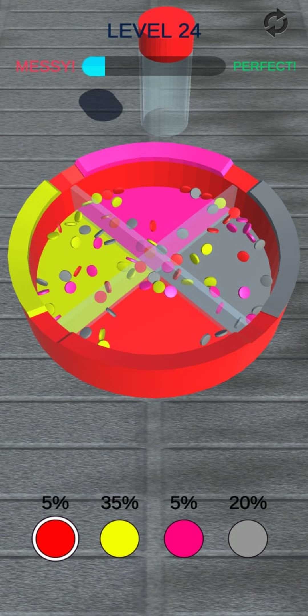 • Do not drop the beads outside the bin otherwise you will have to restart the level using the Refresh button
