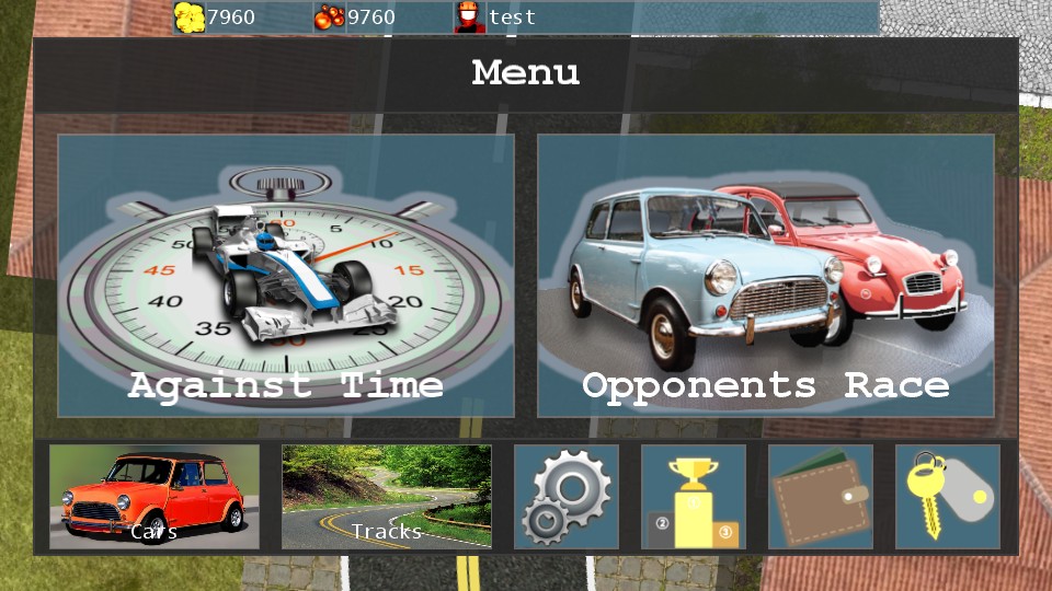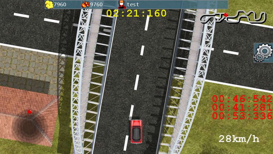 A car racing game with a 2d retro style interface with a top-down view. Uses accelerometer to control the car. It has: