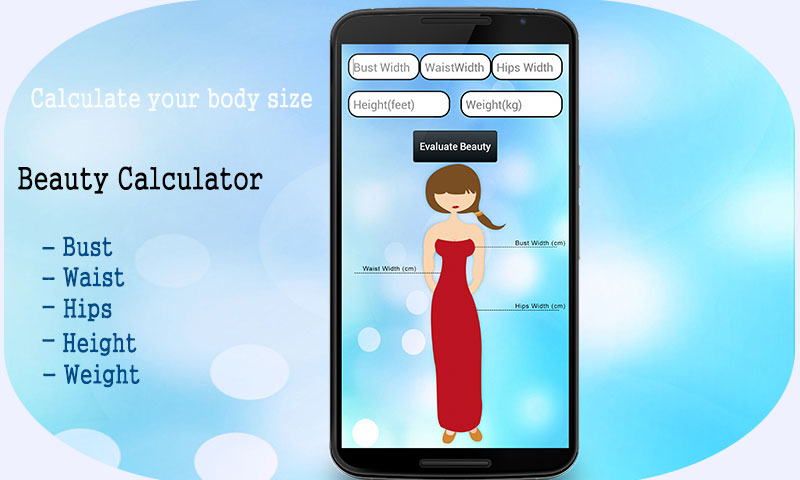 Beauty Calculator lets you Measure your Body fat according to height and weight. Further, you have to provide bust, waist and hips width to check what shape your body has and how smart you are.