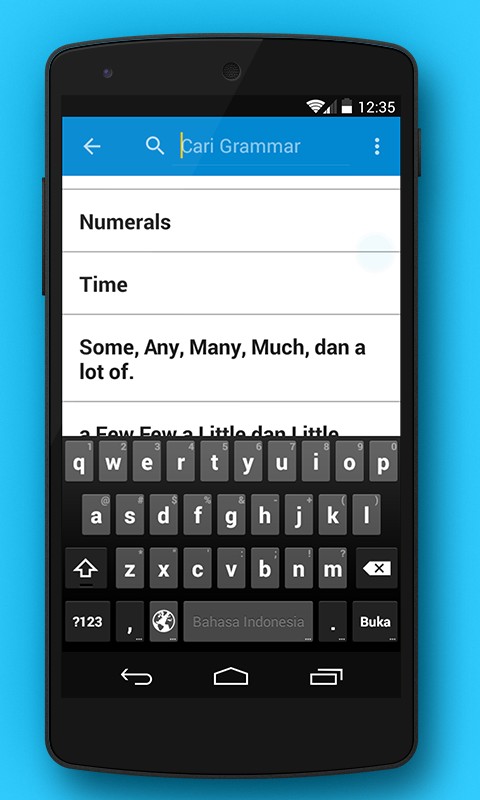 Aplikasi Belajar Grammar Bahasa Inggris Lengkap ini berisikan kumpulan grammar yang umum di pakai disertai dengan contohnya.