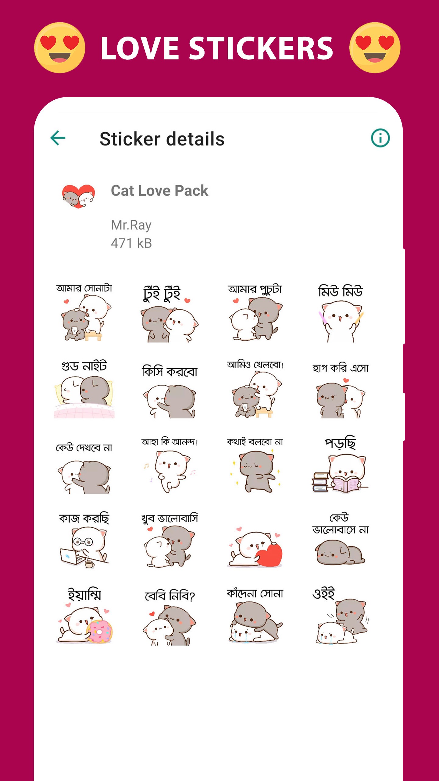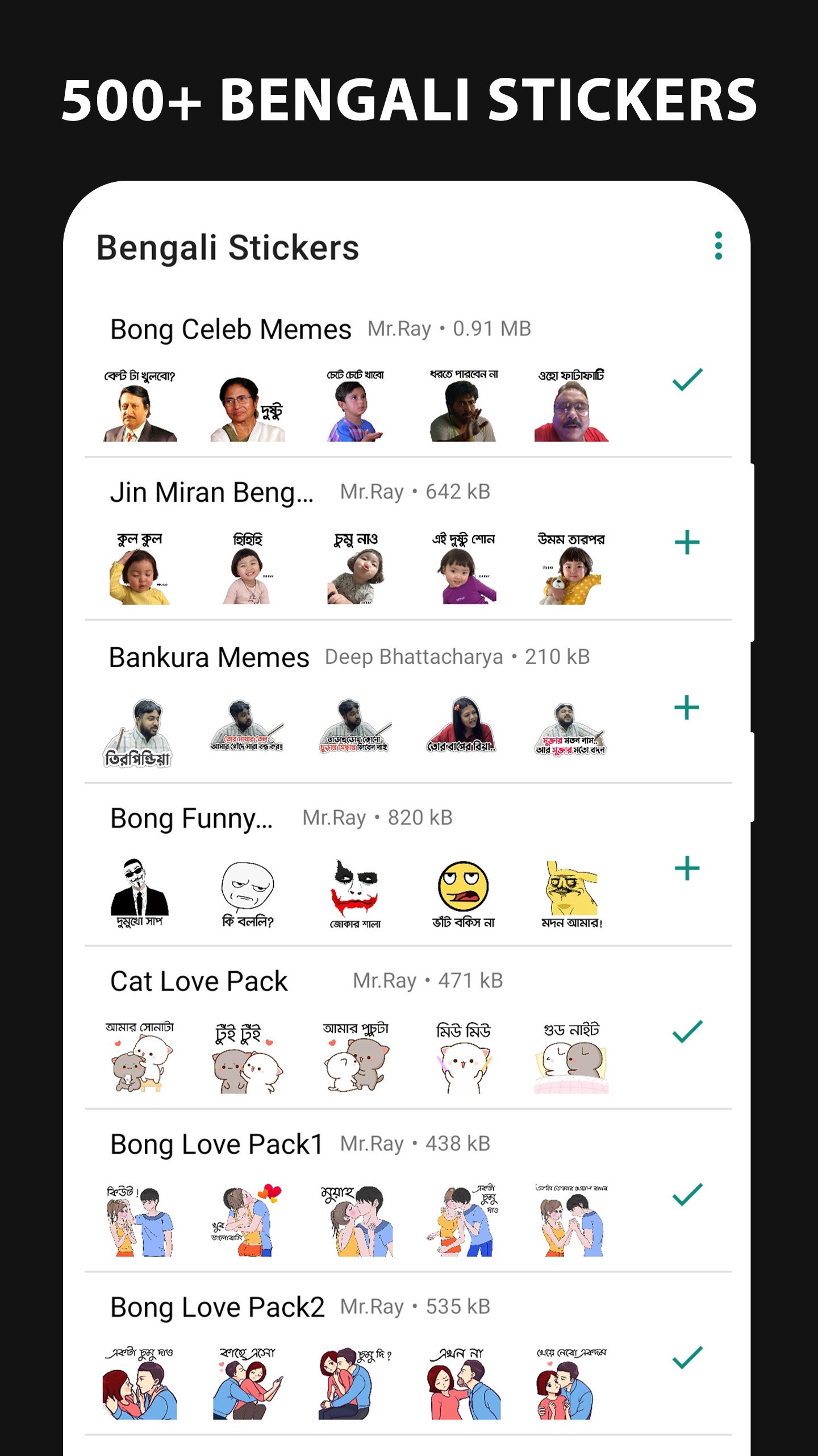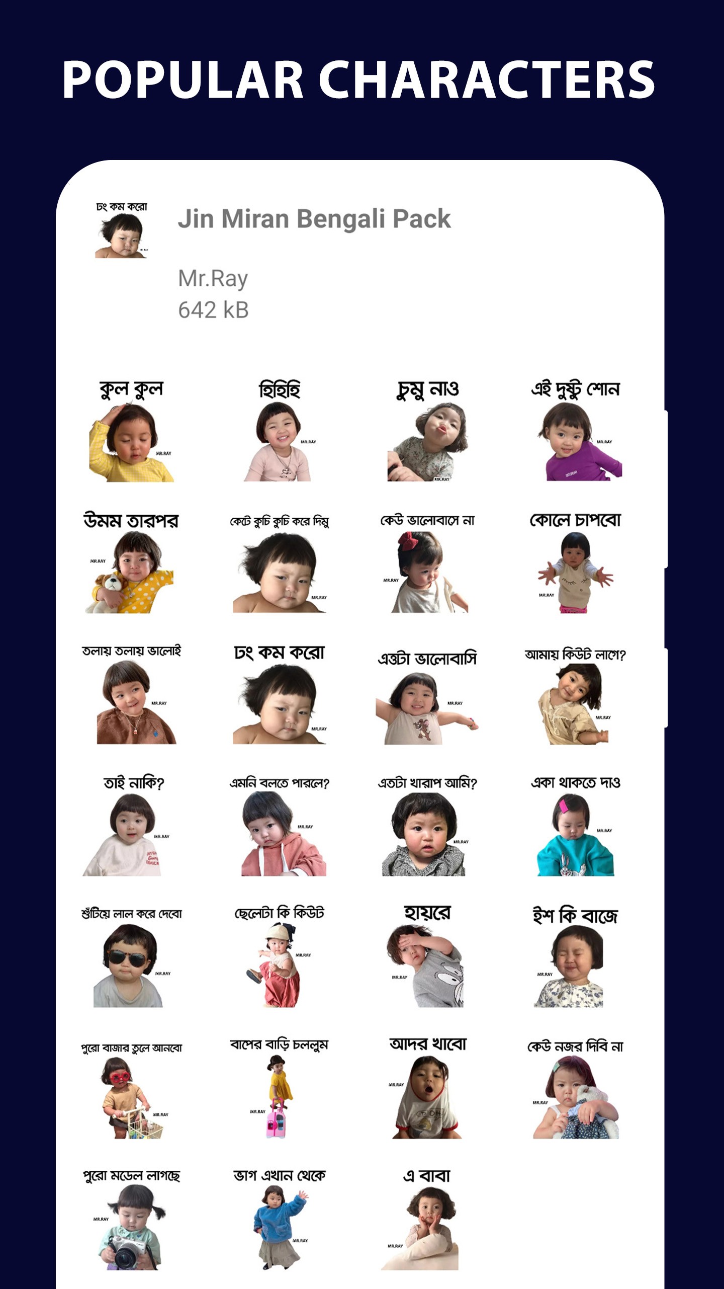 This Bengali Stickers app for WhatsApp contains more than 520+ high-quality stickers. We will be adding new stickers on a daily basis so you will be always updated with the latest Bengali trends.
