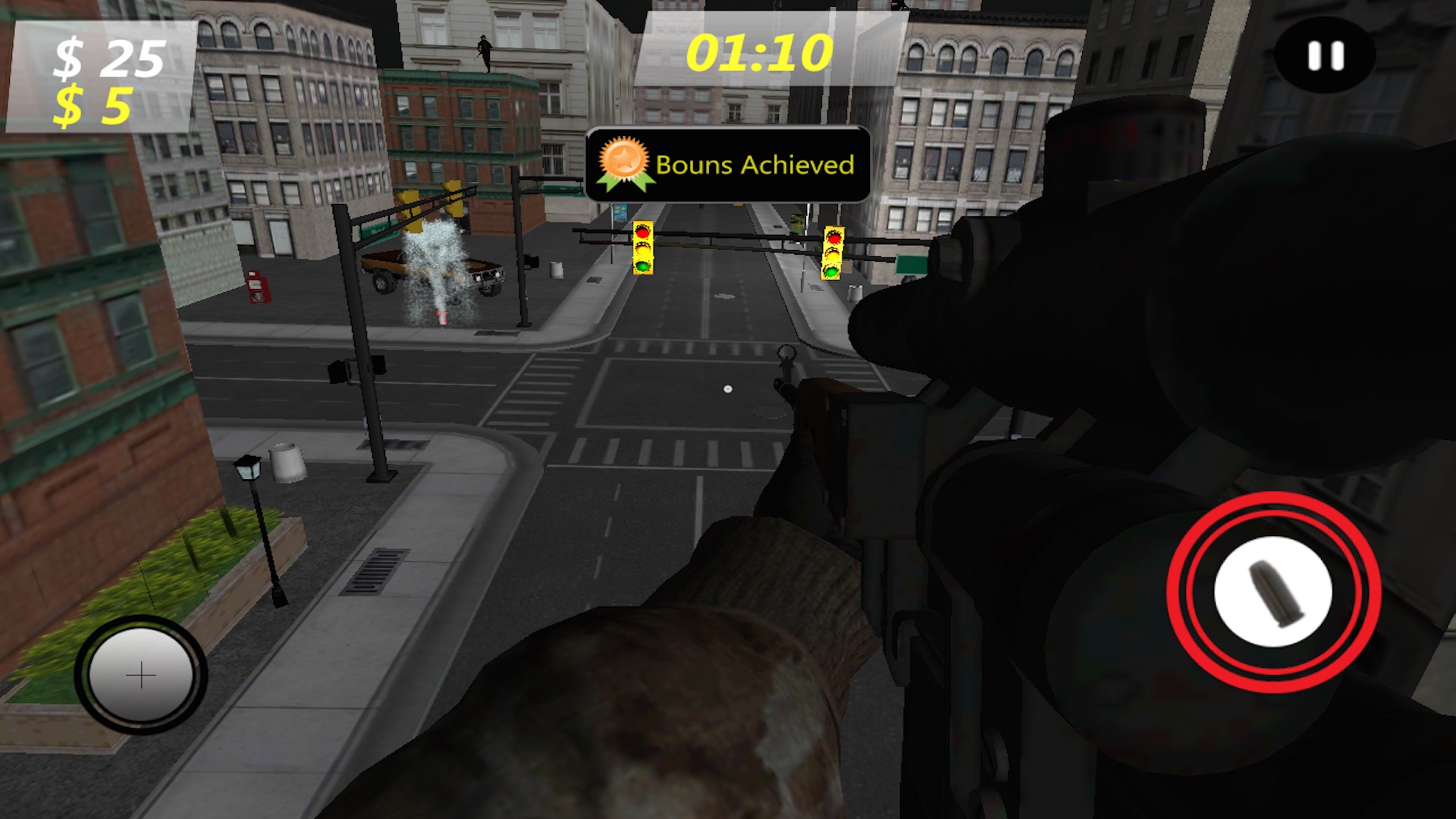 Now its time to take the fight to the enemy and to free the town from the evil soldiers, use your sniper shooting skills to eliminate all the enemy forces soldiers in the city and restore the peace in the city. Shoot all the patrolling enemies in the area in limited time window to clear the waves and play multiple waves in a location. Sharpen your sniping skill in the night city environment. Shoot and eliminate all the soldiers before time to obtain the bonus points in the waves.