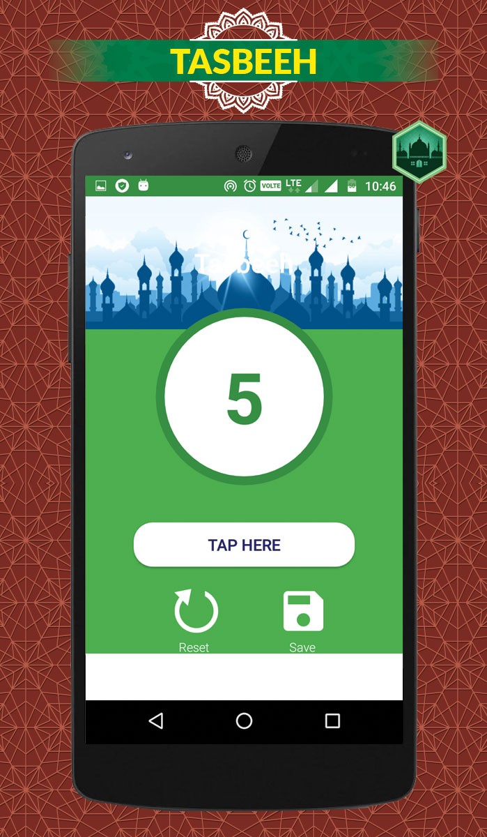 3. Tasbeeh Beads - Don't have islamic prayer beads (tashib), don't worry. Use this app to easily keep track of your prayer count (dhikr).
