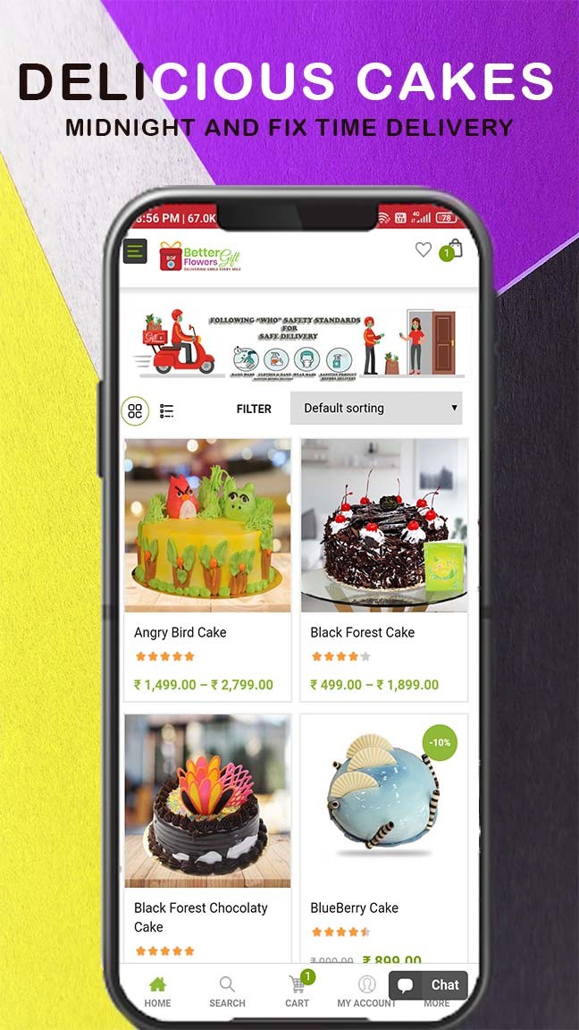 Order Cake Online With the Best Cake Delivery App - BGFBGF has a network of the best bakers countrywide to provide you the quality cakes with complete hygiene and on-time delivery. Every flavor of cake such as chocolate cake, butterscotch cake, blueberry cake, black forest cake, pineapple cake, red velvet cake, and much more are available at our cake delivery app. Apart from flavors, eye-catchy designs for this delicious delight are available in heart shape cake, photo cake, customized cake and even cartoon cakes for kids. When you order and send cake online through our cake delivery app, you'll get the best offer every time you make any purchase. We offer the best deals and discounts on cakes.