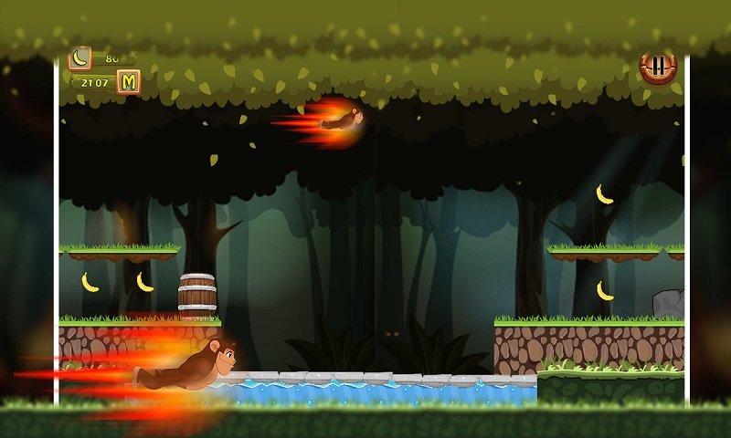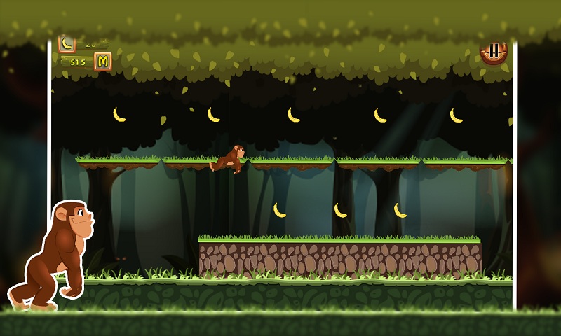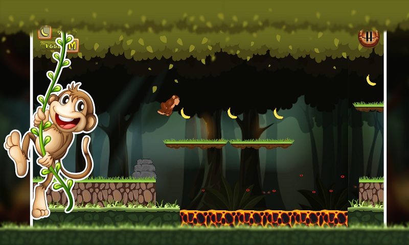 Jump from platform to platform to eat bananas in dangerous jungles. Run continuously but make sure not to lose your footing.