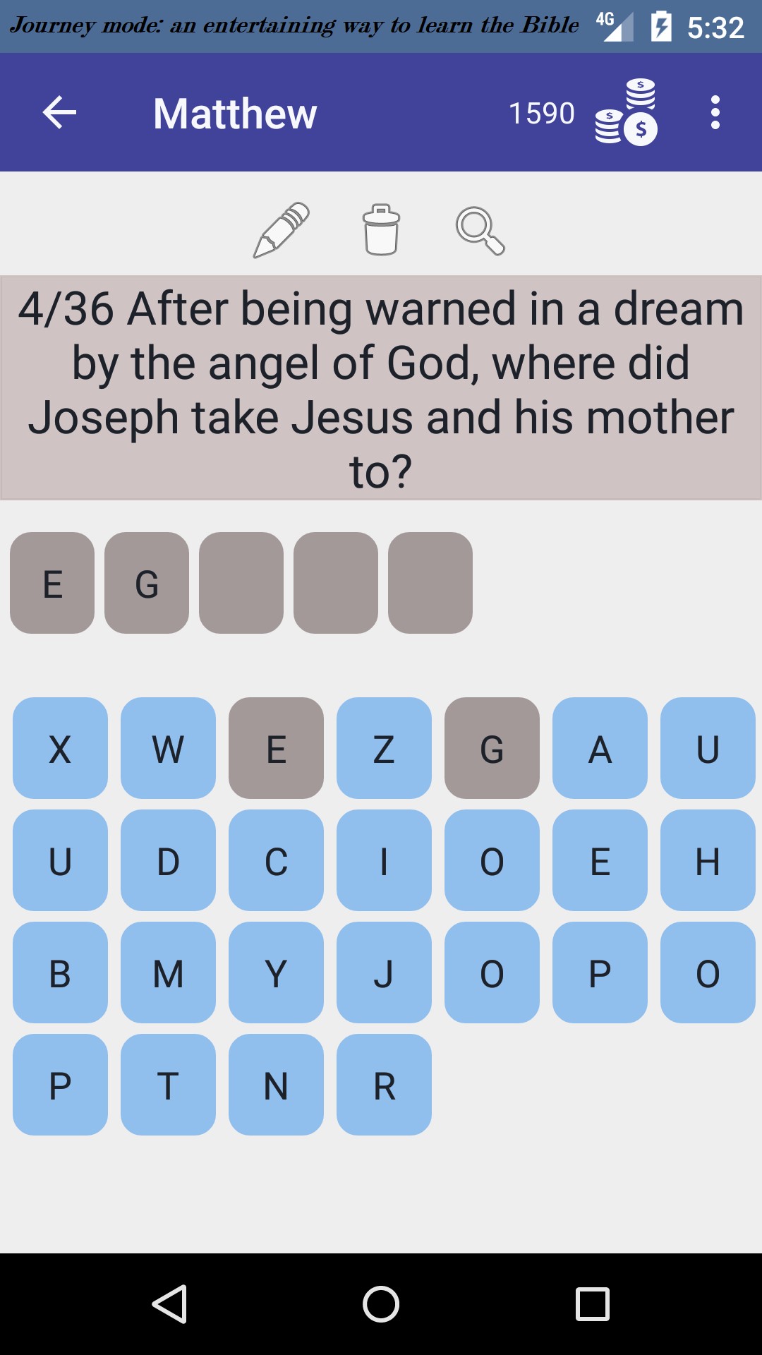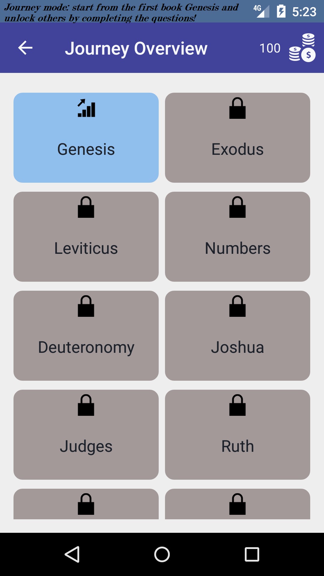 - Create a user or sign in with your Google account, and synchronize your Bible Journey Game data across multiple devices.