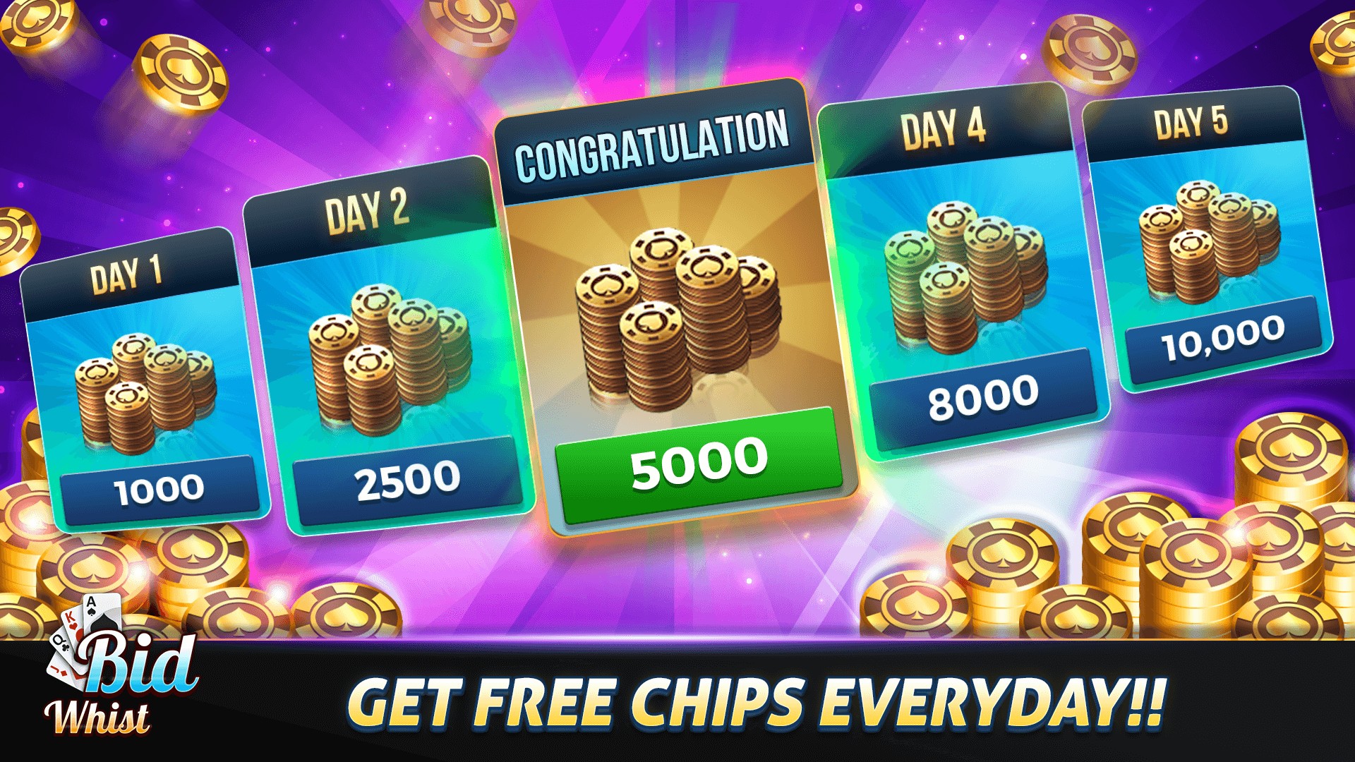 Bidwhist is an exciting classic whist game that any player is sure to enjoy. Place a bid, get more points than the opponent and win chips.