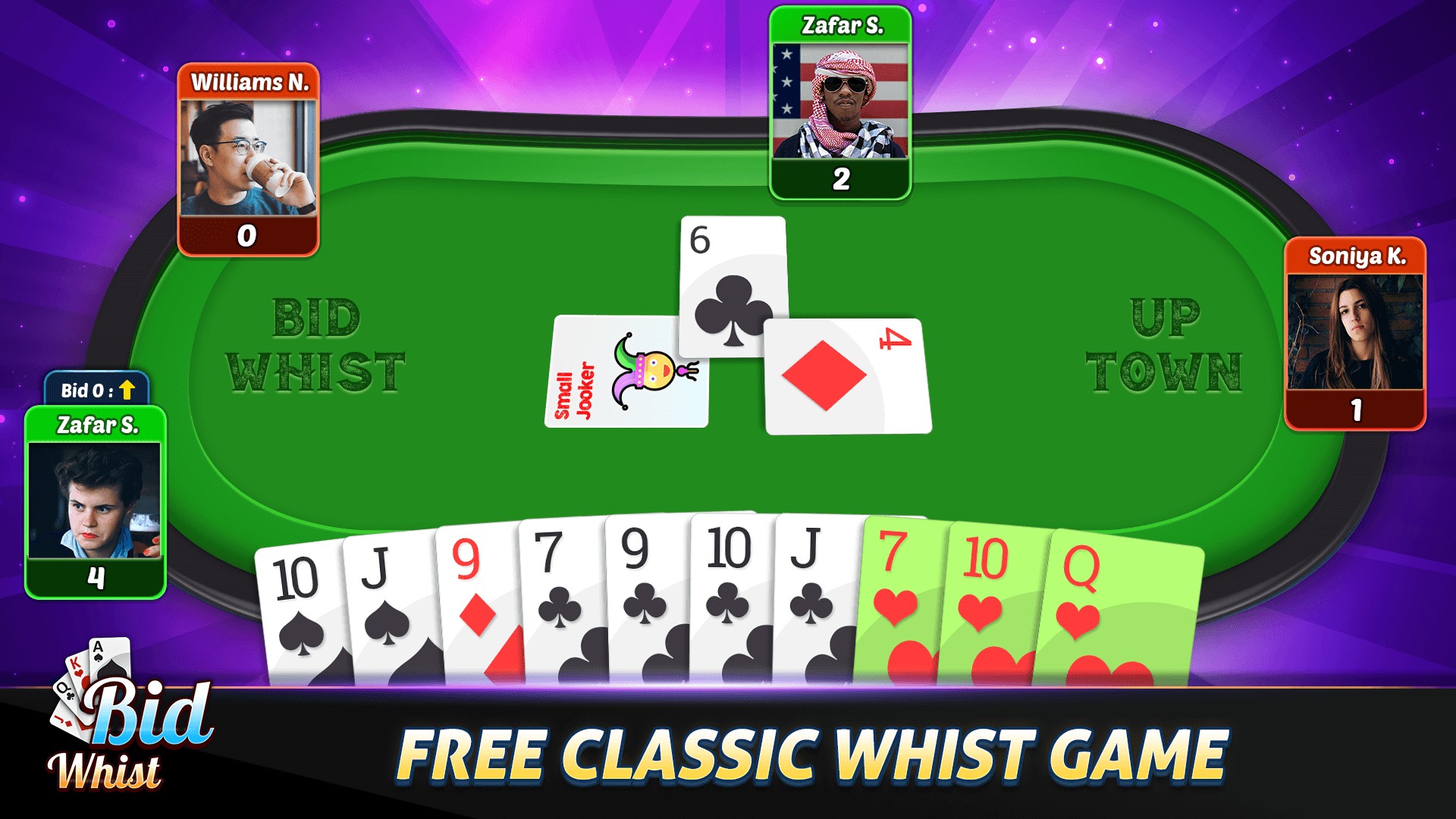 Play the most popular whiz partnership fun games. Bid whist is very similar to the classic whist card game. Two-player whist game is played with a standard 2 joker & 52 cards.