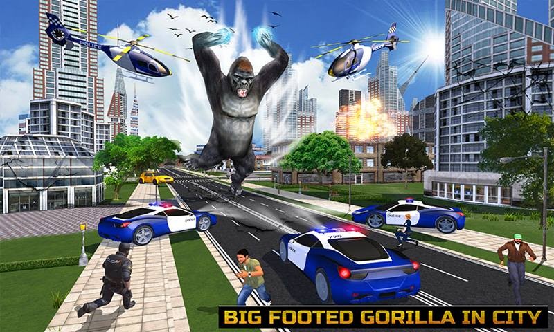 Enjoy with taking the controls of the angry gorilla and evolving into unstoppable gorilla war with the bad scientists. Destroy everything that stands in your way, beat the skyscrapers, helicopter, luxury cars, police helicopter and houses with your powerful gorilla’s attacks. Incredible monster gorilla role of city smasher made this big foot gorilla game crazier.