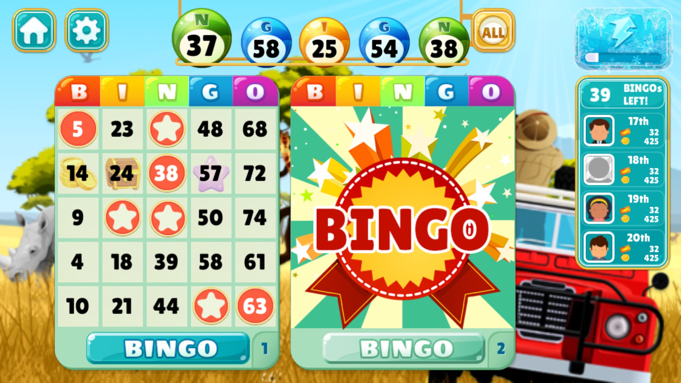 - Experience a new challenge with up 12 Bingo cards at once.