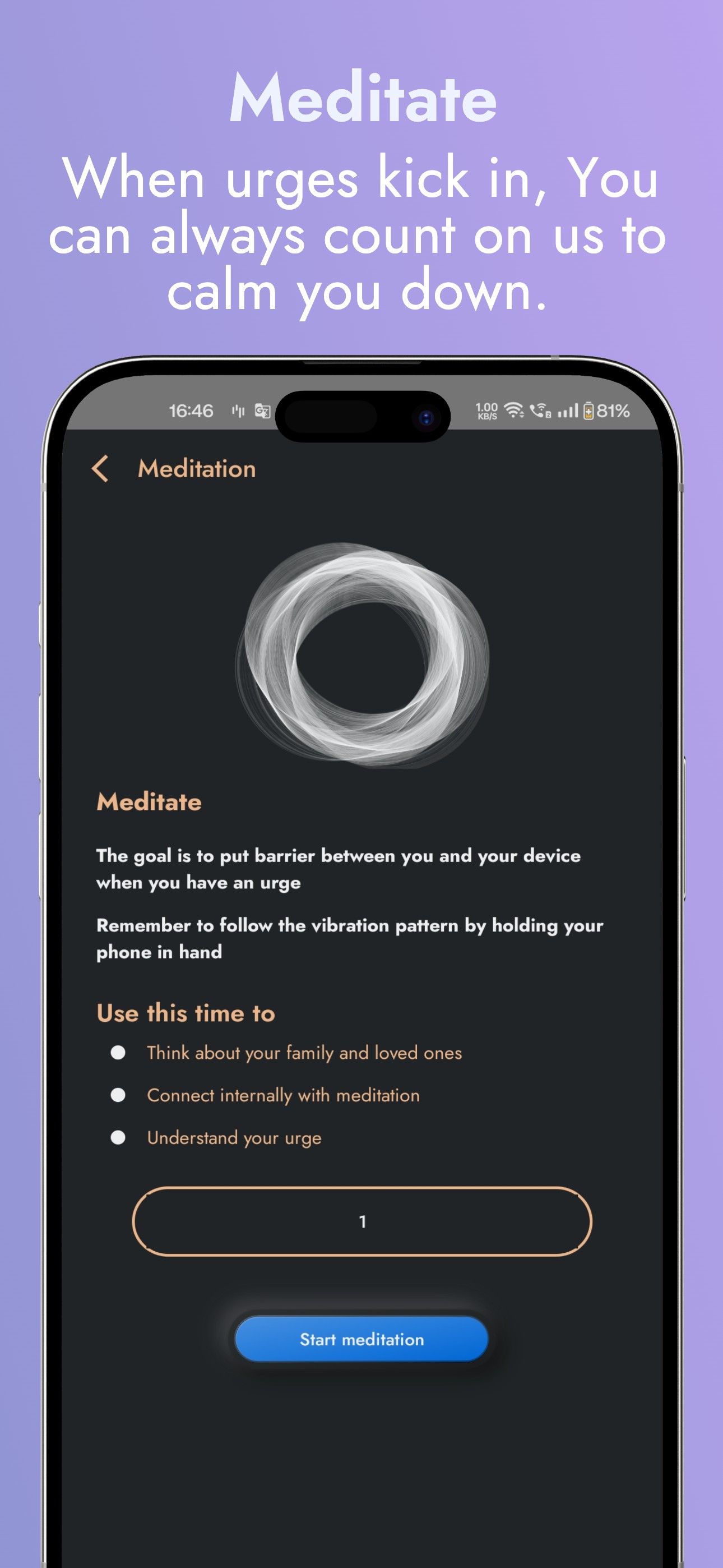 7) Meditation to reduce urges: A most effective tool to reduce your urges to watch any adult or explicit content. We have designed it to be interactive and calm you down