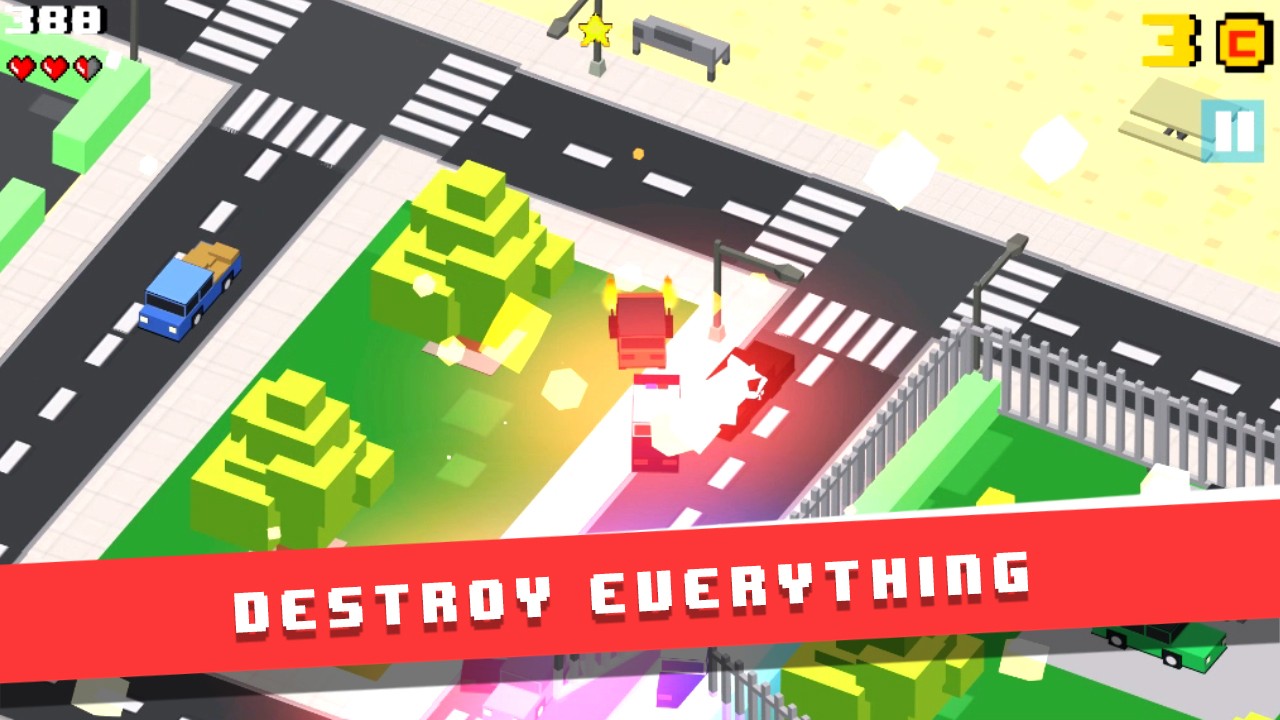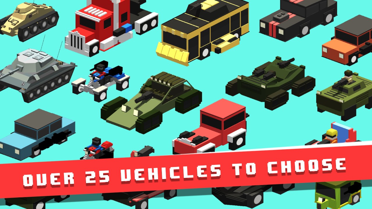 Choose from an arsenal of bikes, cars, tanks, alien spaceships and superhero cars equipped with awesome guns, bazookas, machine guns and missiles. Shoot, smash and rampage your way to the top of the leaderboard.