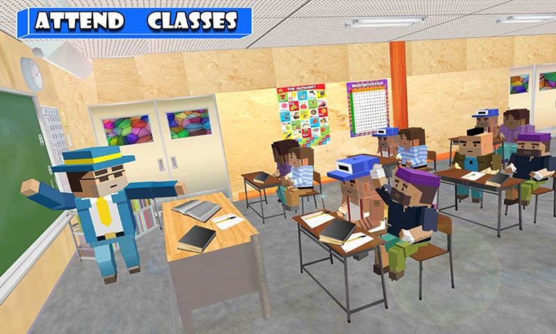 Now it’s off time. You sit on the school bus and reach in the house. In the house you need to learn your test for next day. If you pass the test next day, your level is complete otherwise you failed the level. In the game you will be enjoy the 3D environment of Blocky house, Blocky High roads and beautiful school.