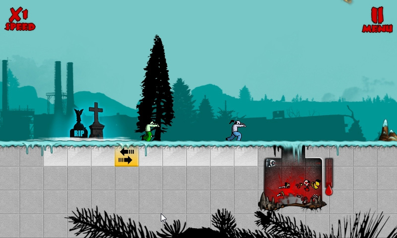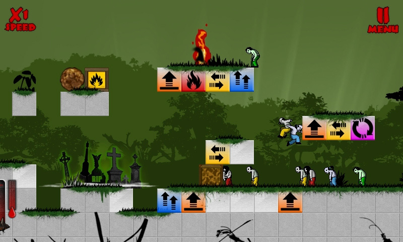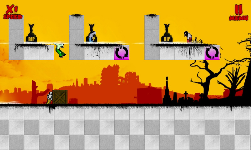 Navigate zombies through a series of challenging puzzles in this side scrolling platform game. The objective of each level is to guide the zombies to the death chamber where their blood can be collected.