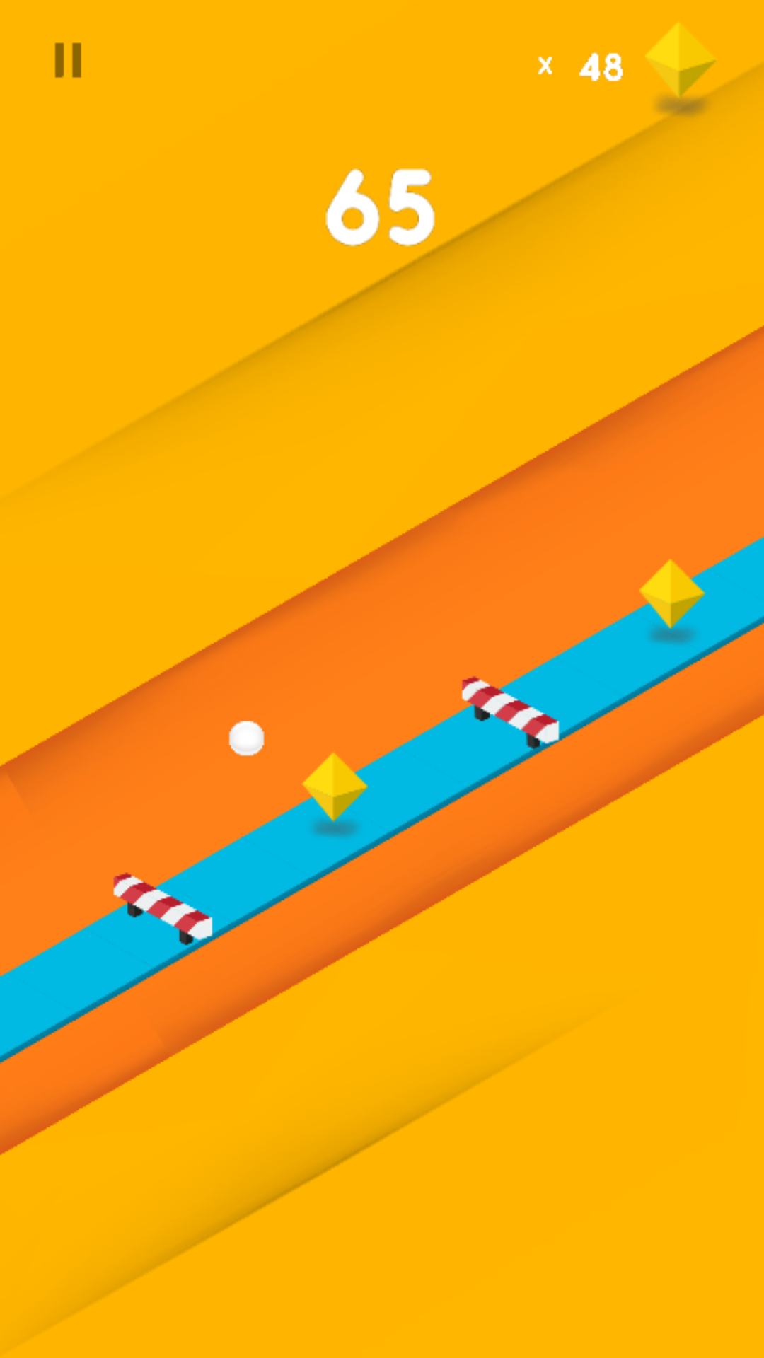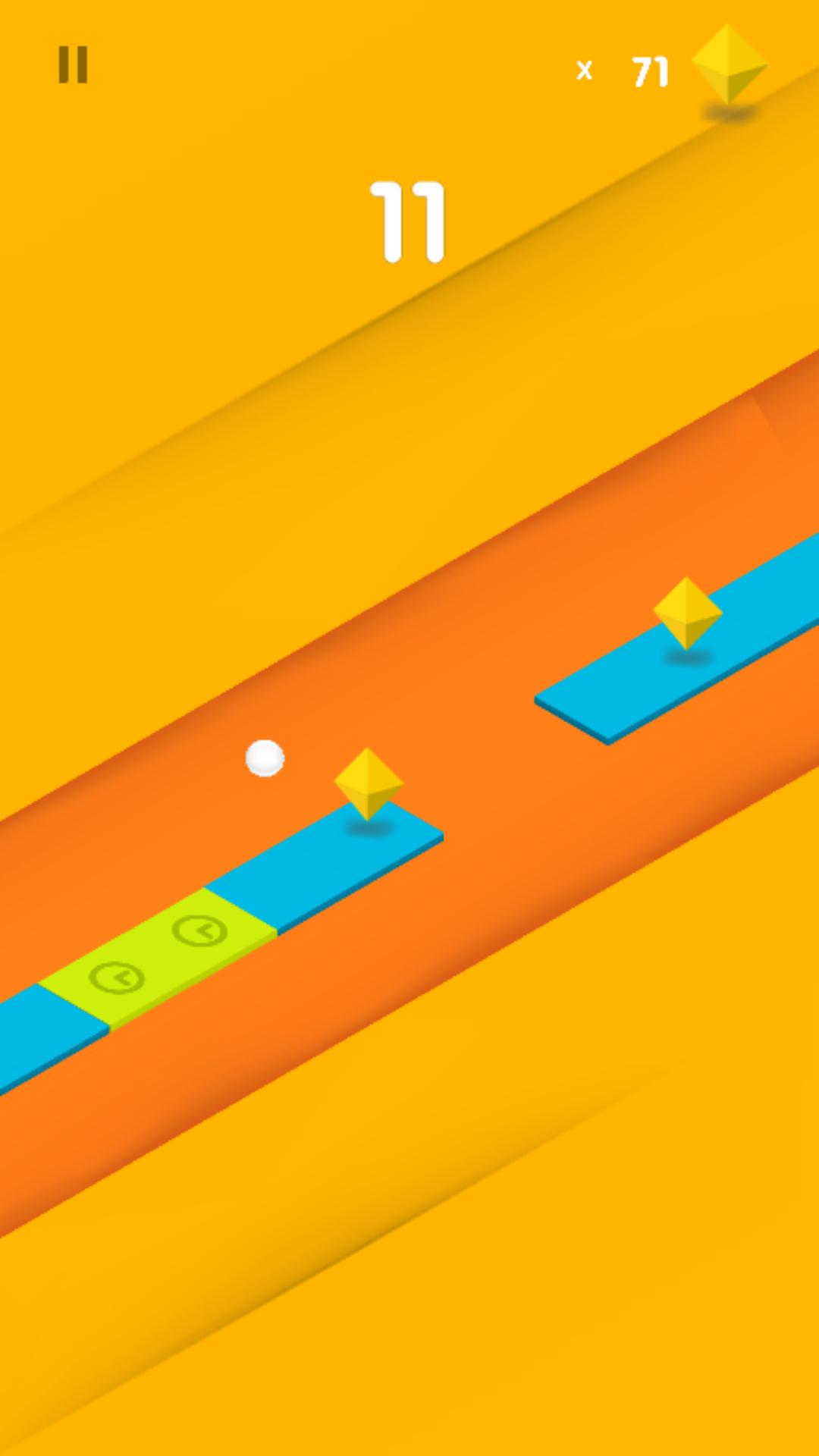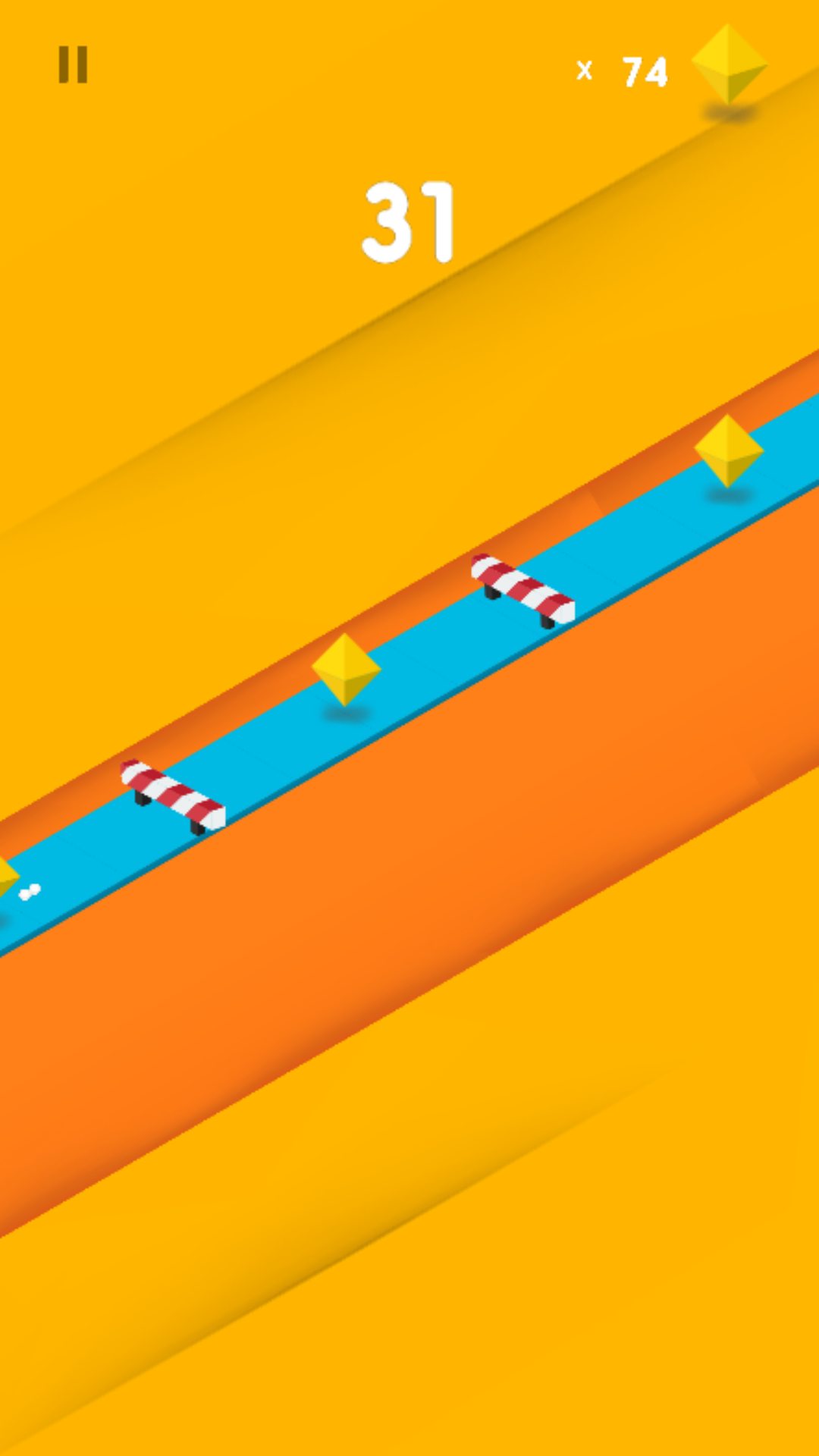 Speed along the blue path; try not falling down or crashing into blockades. The path is tricky; run over red squares and you will speed up: run over yellow squares and you will slow down. Collect the crystals along the way and unlock new characters!