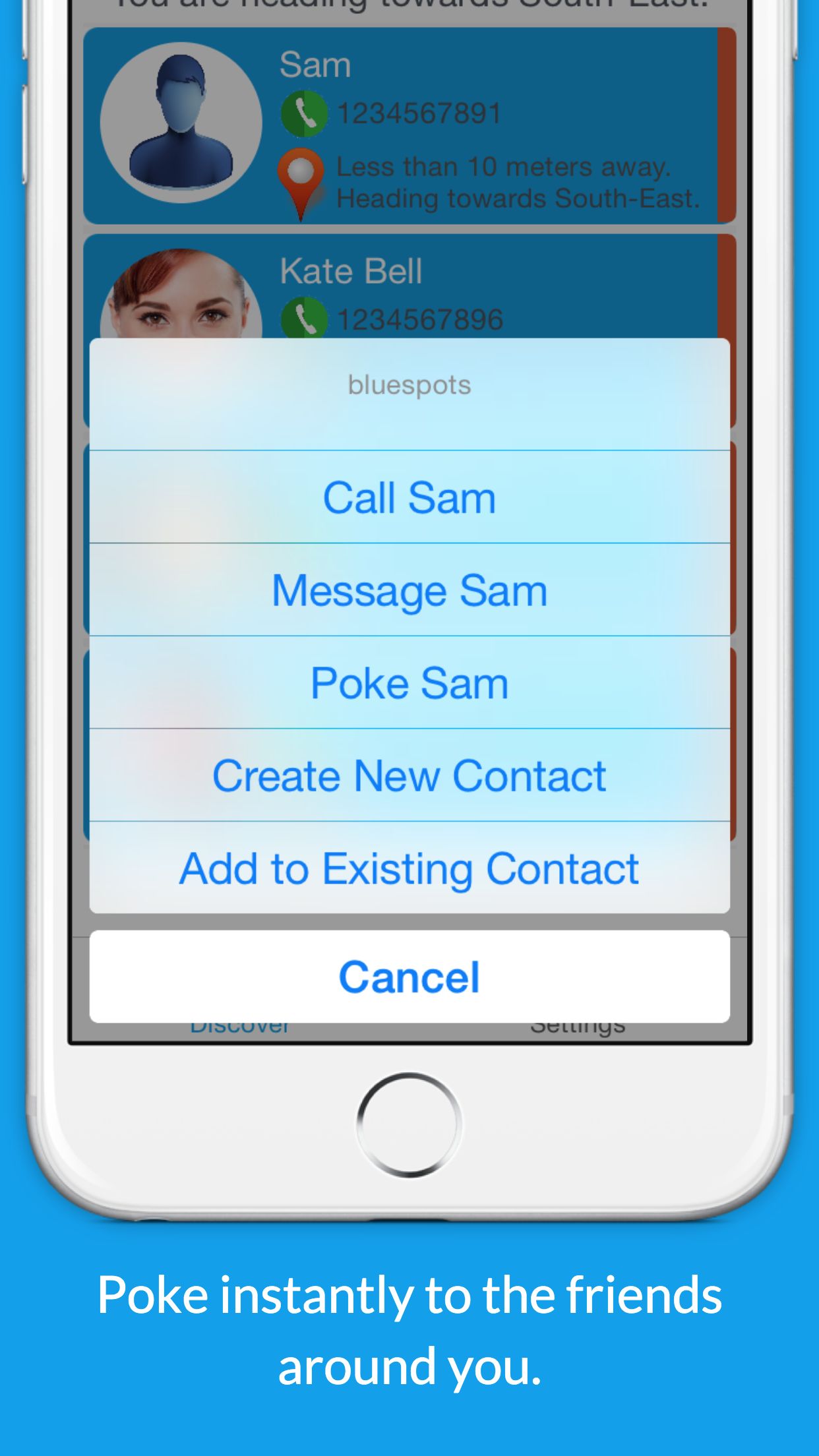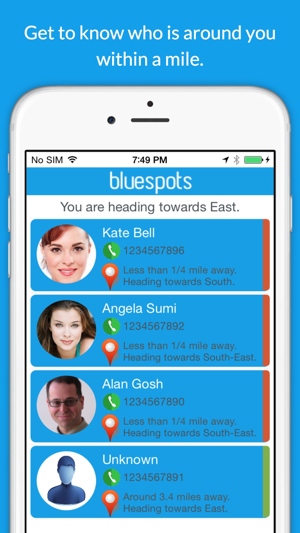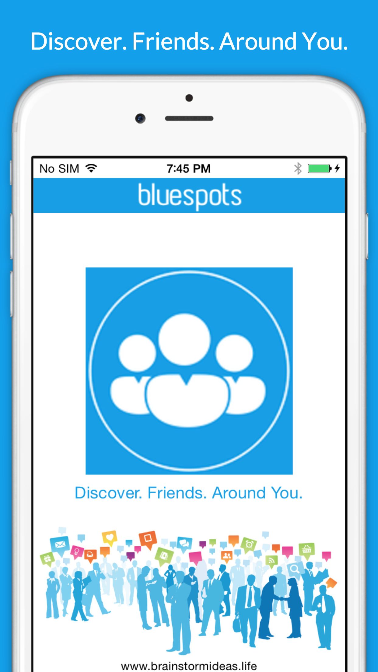 bluespots allows you to discover your friends around you. If your friends, are using bluespots application you will be able to discover them and so will they discover you.