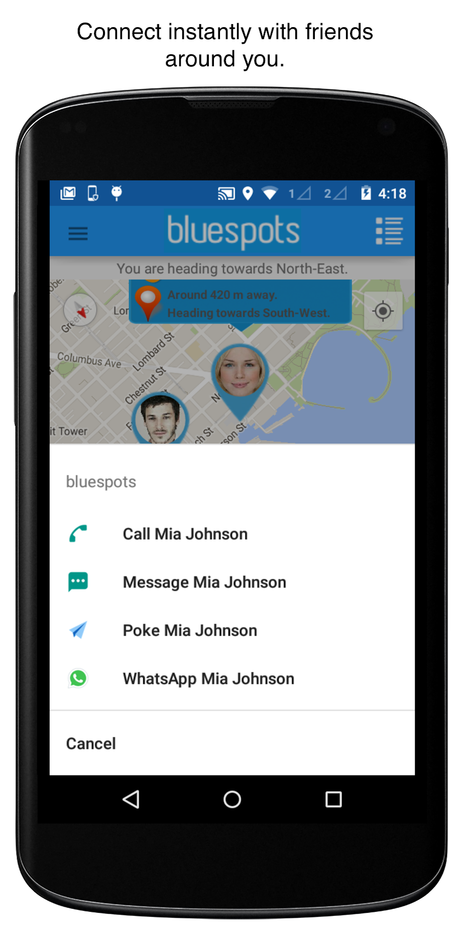 You can also Poke your friends instantly. Make a call, send message or connect on WhatsApp. You can upgrade to these premium features within the App to use any of these features to connect with discovered friends.