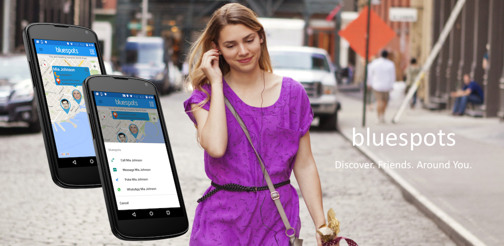 bluespots allows you to discover your friends around you. If your friends, are using bluespots application you will be able to discover them and so will they discover you.