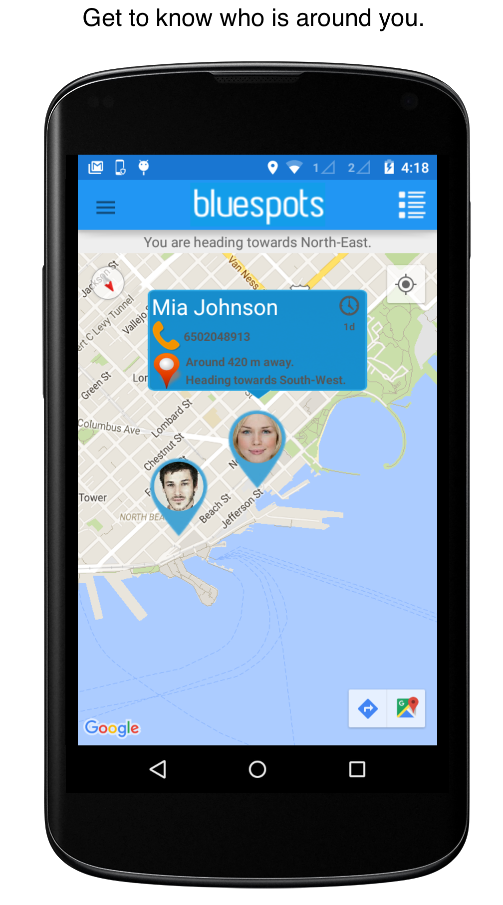 It provides real time location updates, distance and direction, for your discovered friends. Its simple map based UI make it easier to locate who is around you.