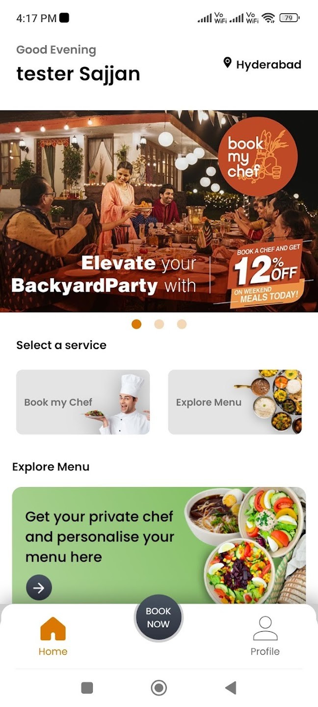 Our Mission: At BookMyChef, we aim to revolutionize the way you experience food and drink by providing seamless access to the finest culinary talents and events. We are committed to bringing exceptional hospitality into your life, whether it's a cozy dinner at home or a grand celebration.