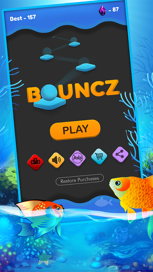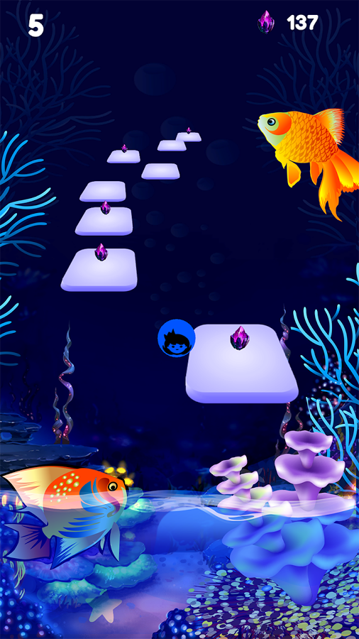 Simply tap once to start the game. Under the sea, keep swiping left and right to move your ball from one hop to another.Keep playing and collect more and more diamonds to change your balls. Try not to fall off the edge or you have to play the game again.One of the best HOP, Jumper and old Bounce classic game.