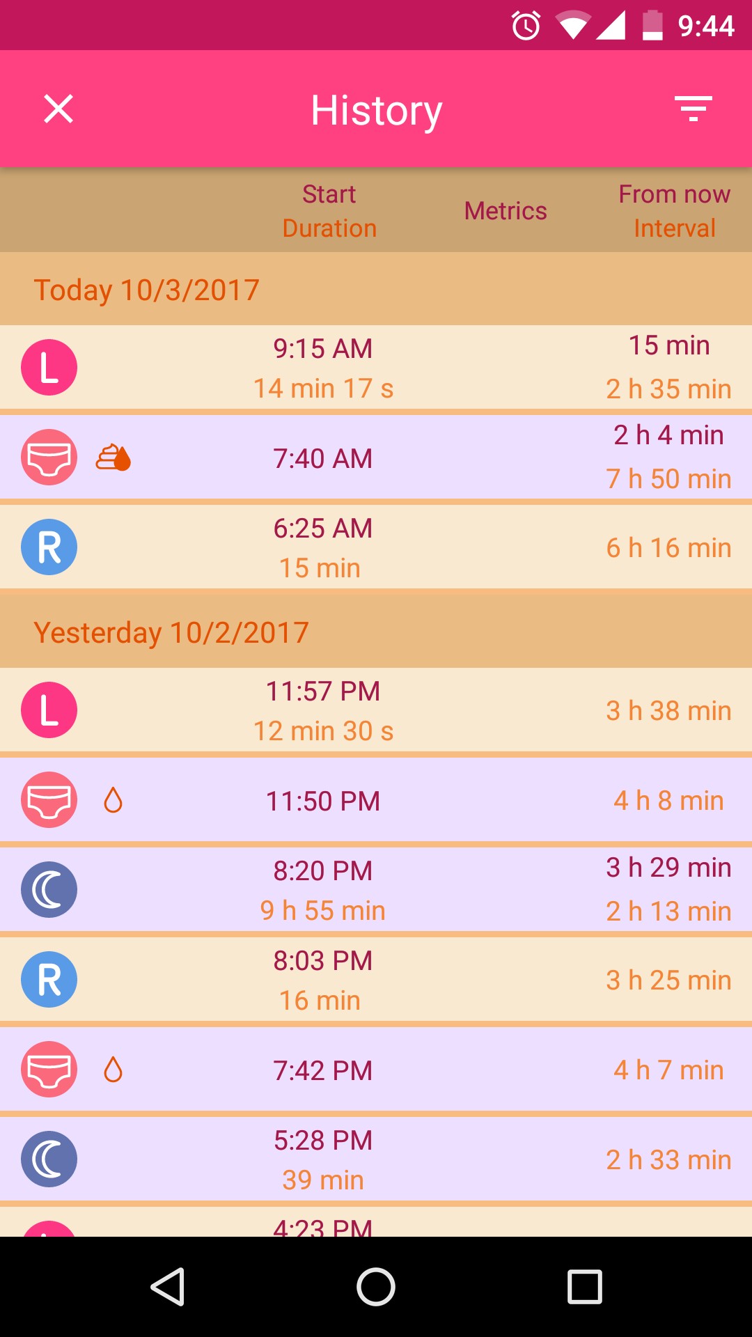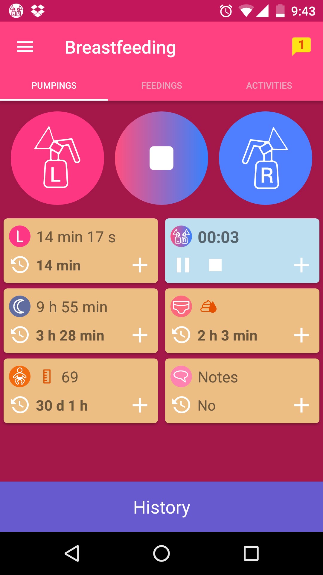 Use the features of the Breastfeeding tracker application.