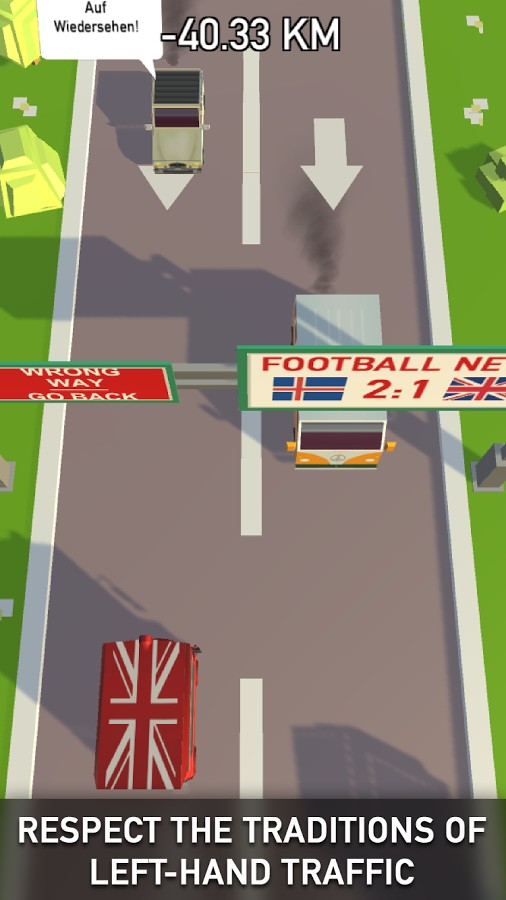 Brexit: just follow your way. In this game you play as a British double-decker which respects the traditions of left-hand traffic, even when others don't.