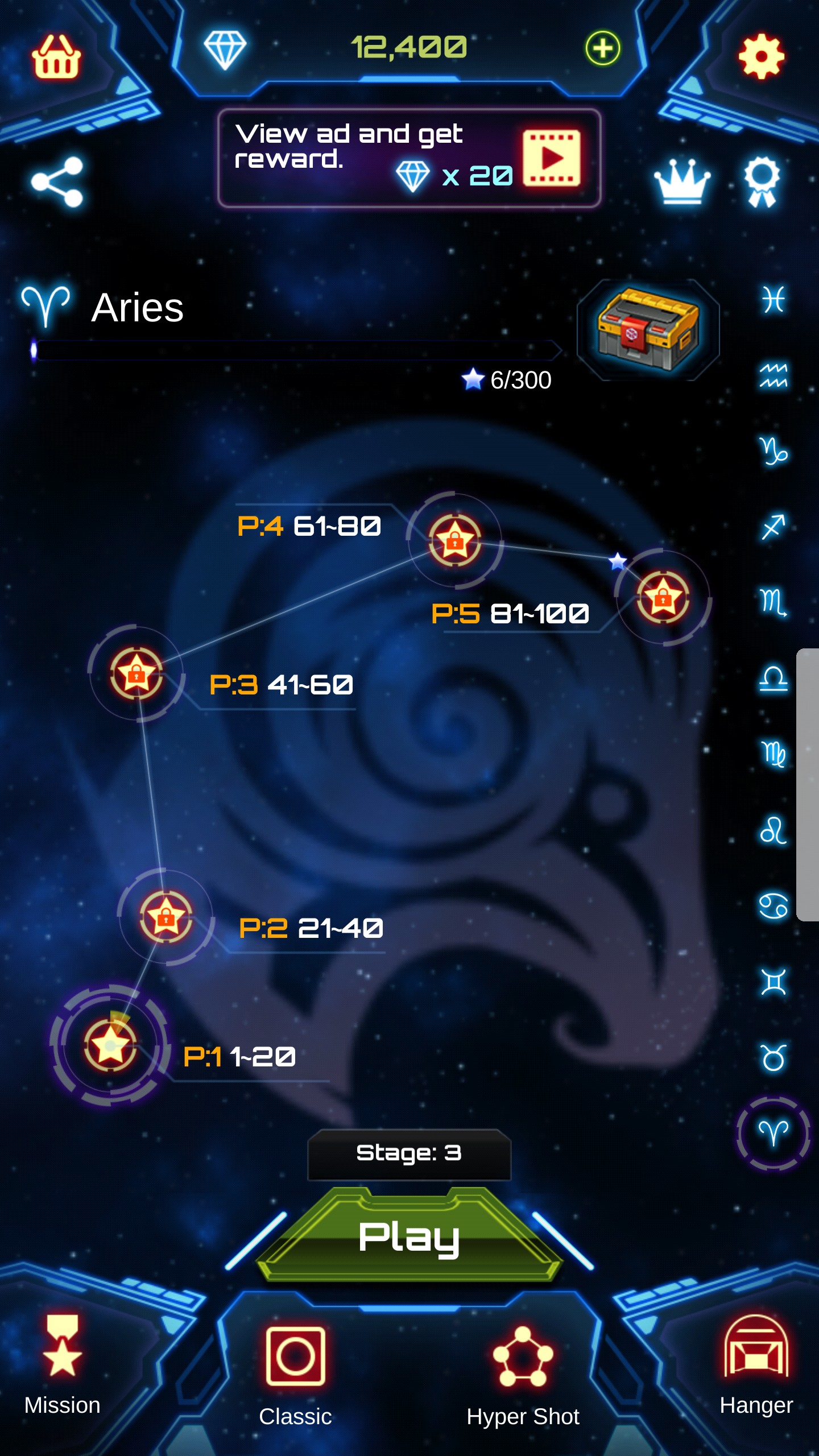 The background of the game is laid out in 12 constellation images. You can choose what kind of spacecraft you want to take on your journey