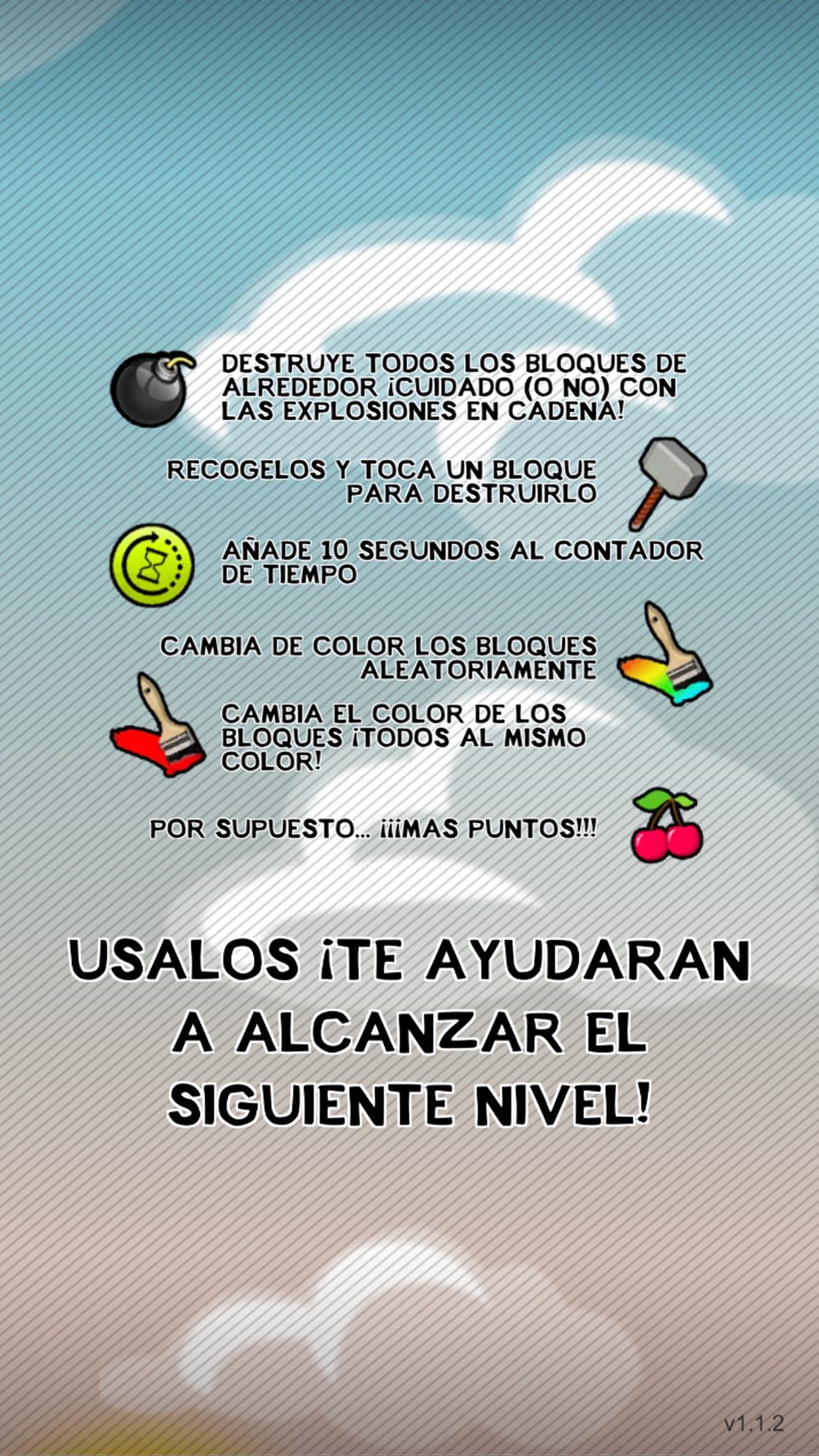 • Bombs!: Destroys all bricks around them. Careful (or not) with chained explosions!
