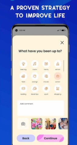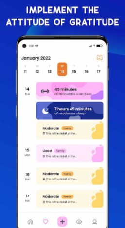 Add a photo, an emotion or text to your entries. An attitude of gratitude creates a positive mental health experience, mindfulness, genuine wellbeing and a feeling of contentment.