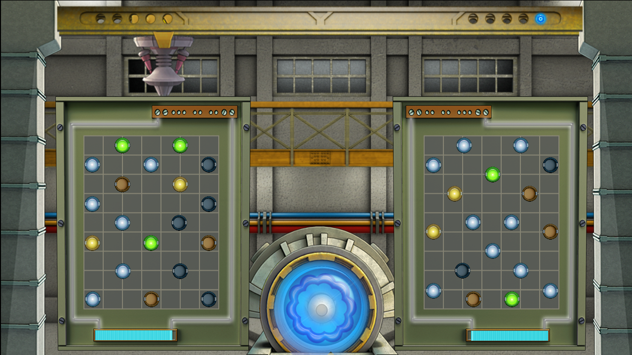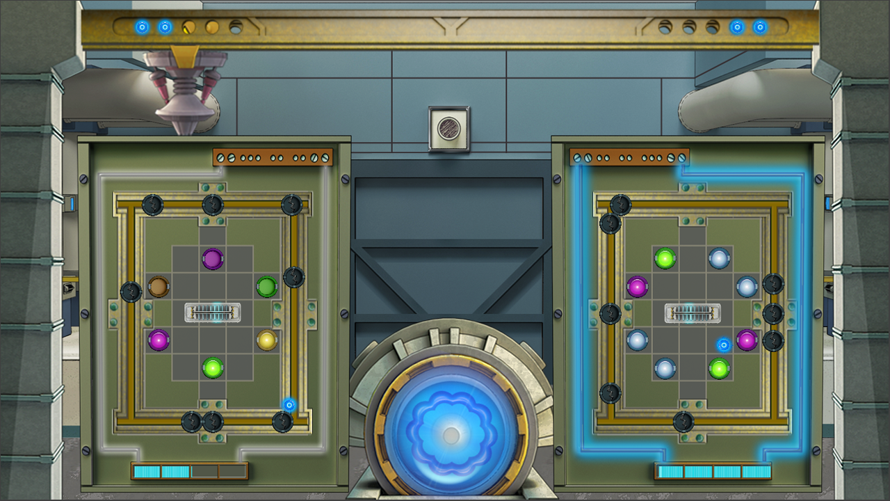 With your finger, you can move the particle emitter located above the panels to the left or the right. Taking your finger off the emitter will trigger the release of the energy particle. This particle will recharge any of the deactivated capacitors it touches within the panel. Each panel must be charged back up to 100%, so if you activate too many capacitors you will overload the individual panel.