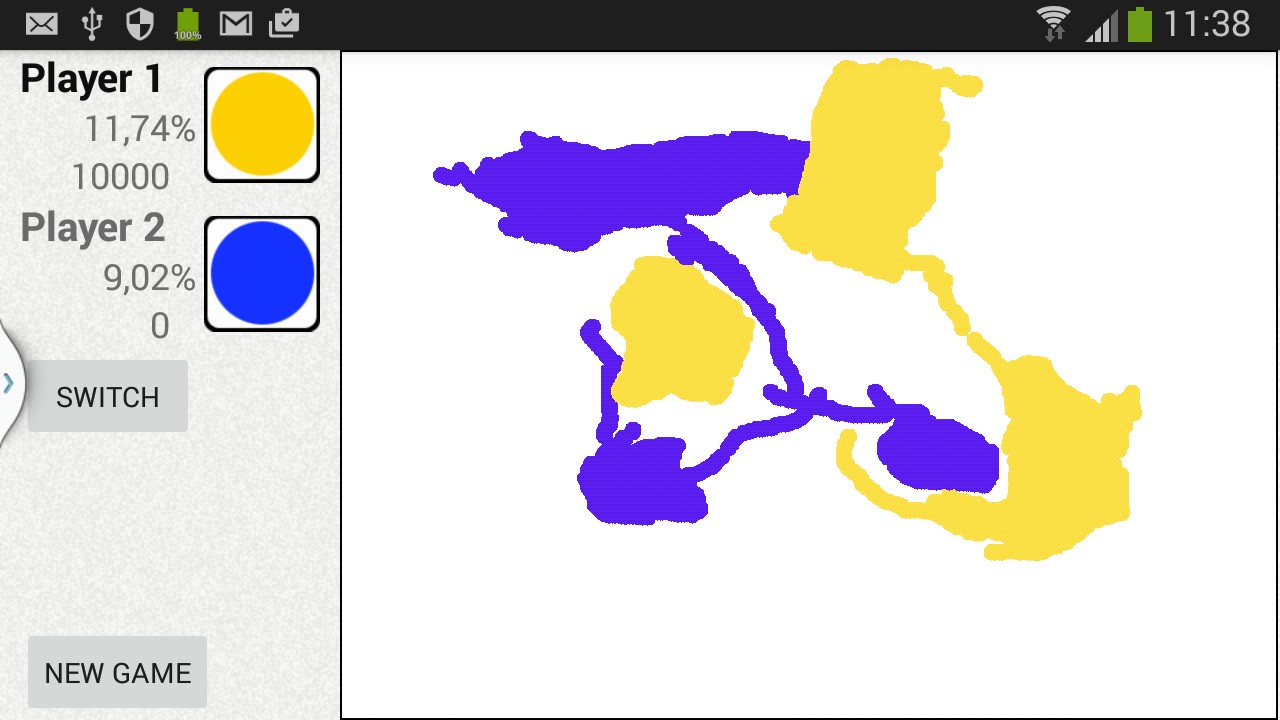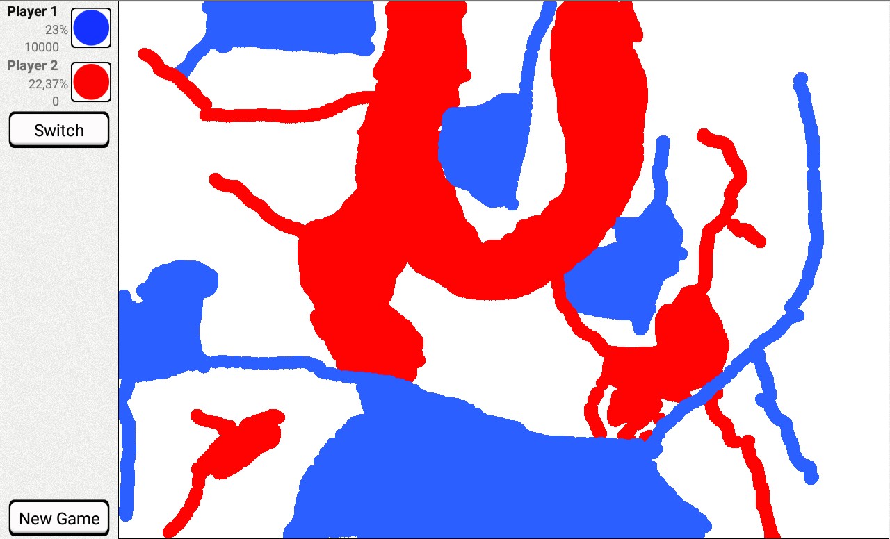 In this fun two player game an empty canvas is your playing field. With limited amount of paint each turn the objective is to fill more of the canvas than your opponent. Encircle an area and everything inside gets filled with your color!