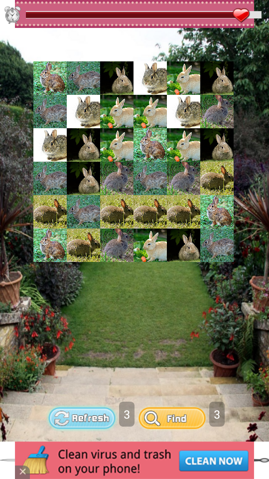 Find the matching bunnies that have an open path between them. When you get a hit the game cards will show the link and eliminate the two cards matched!
