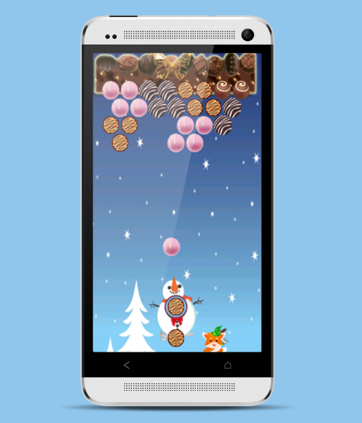 The Bubble Shooter game lets you use your finger to move a target, providing a perfect target before pulling the chocolate bubble for Destroy the bubbles.