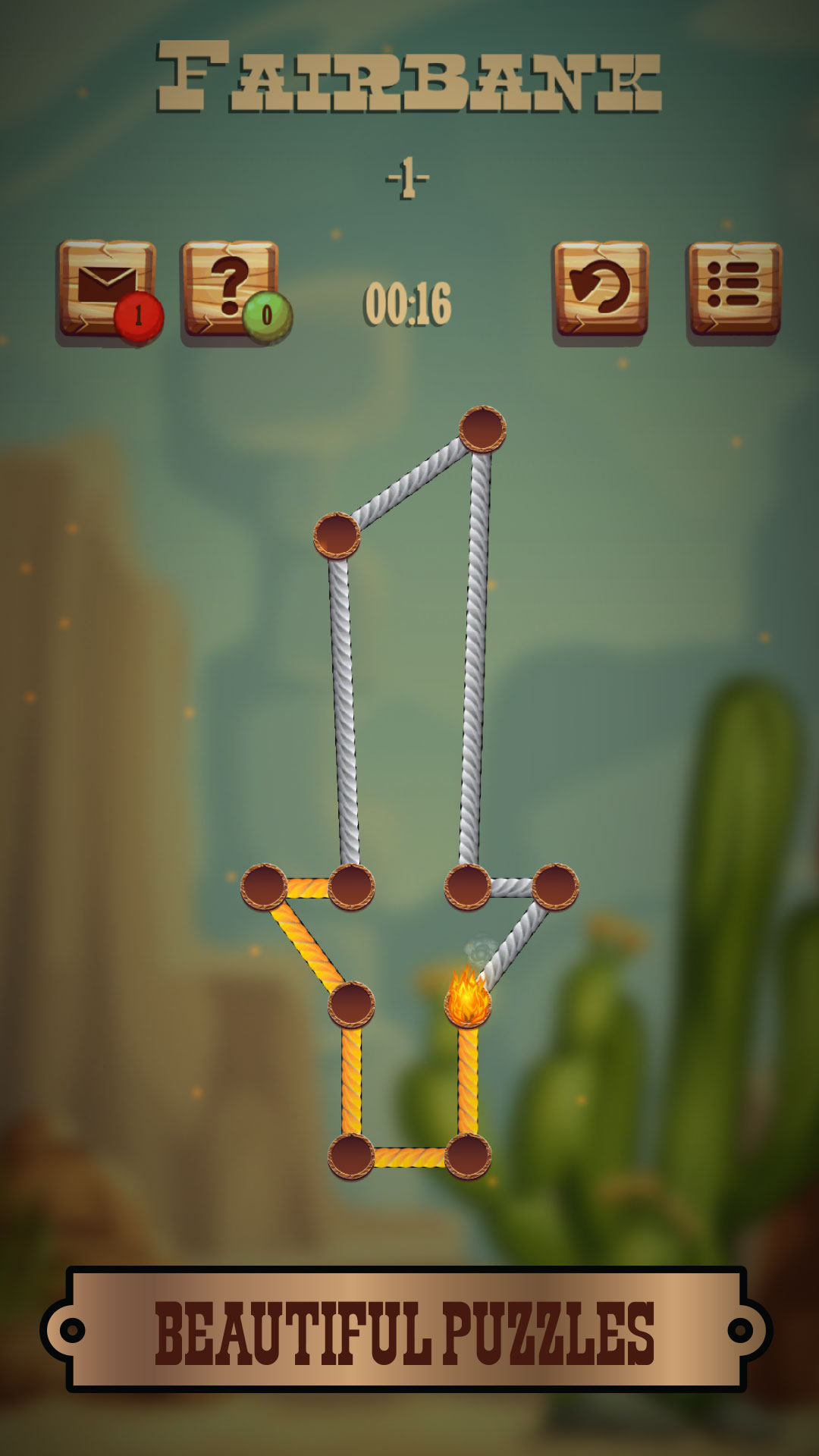 Burn the Ropes introduces a new mechanic to gaming based on the concept of Connect the Dots . The game is designed more like a Disconnect the Dots with some extra gameplay features that make the game harder and also more interesting and more rewarding to the player .
