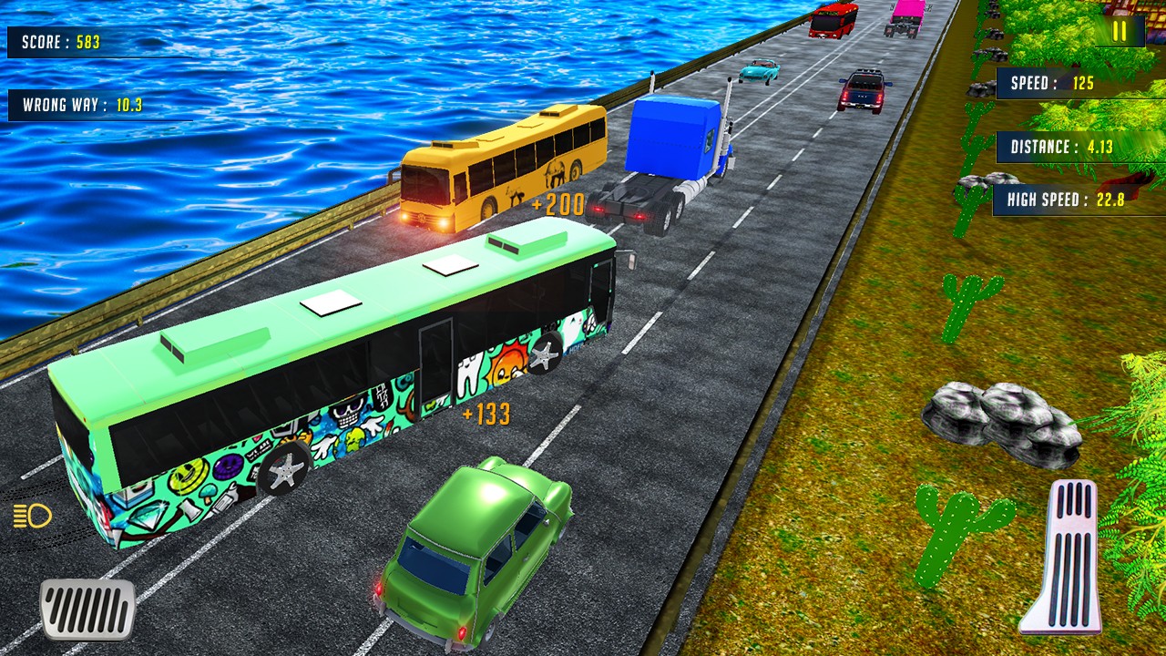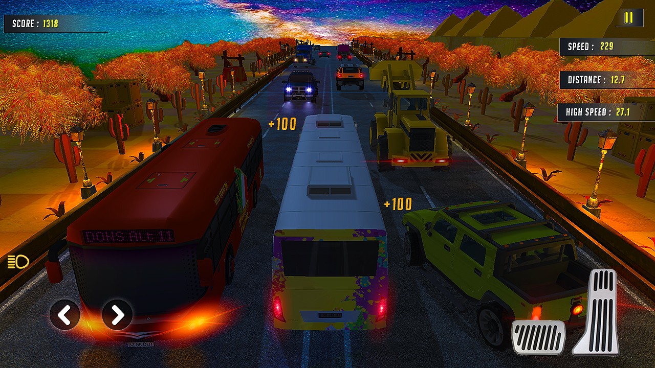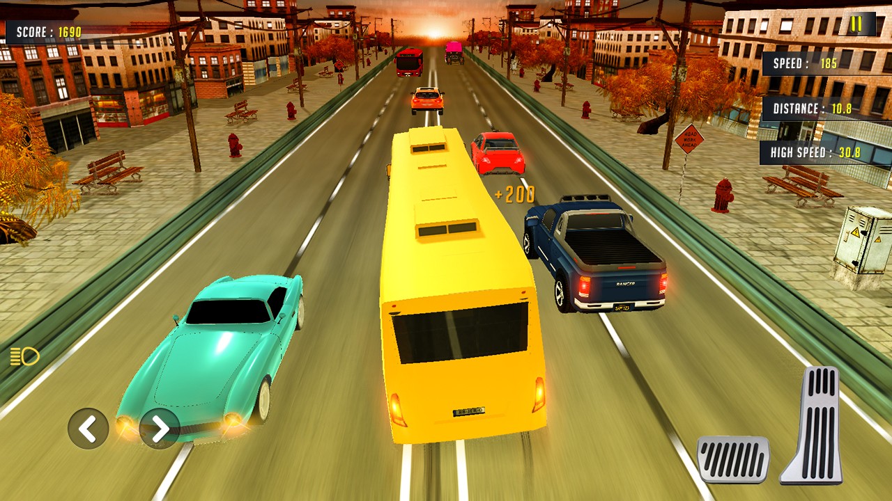 This time to drive Bus in traffic and enjoy the ride in bus traffic rider, you are behind the wheels of a bus in a much more detailed gaming experience, but bus traffic racer is also retaining the old school fun and simplicity. Enjoy the heavy bus driving in adventure bus traffic rider. You will need abundant precision driving skills, needs to be quick and perceive the road in order to avoid accident and earns coins and powerup you bus traffic racer. Bus traffic racer burn up the streets and experience endless racing on the highway surge through busy traffic and bending roads ahead in day mode in Rider Bus in rush traffic. Endless highway Bus traffic racing fever and bus traffic rider is a racing horizon unlimited racing highway carX game in which you will be lunched the second part of this game which is Traffic racer 2:bus driving Rider Bus in rush traffic simulator 2018 extreme street racing 3D The highway is endless and the driver needs to elude through a variety of vehicles and race through the traffic as far as possible and try not to crash into the vehicles to avoid ending the game in bus traffic racer. Try to be one of the fastest drivers in the global leaderboards in bus traffic rider. Endless simulation bus traffic racer is now redefined! You drive your bus in full bus view through the endless traffic and immersive environment. Tilt your device to control your bus, overtake traffic, earn coins and buy new buses for your bus traffic racer.