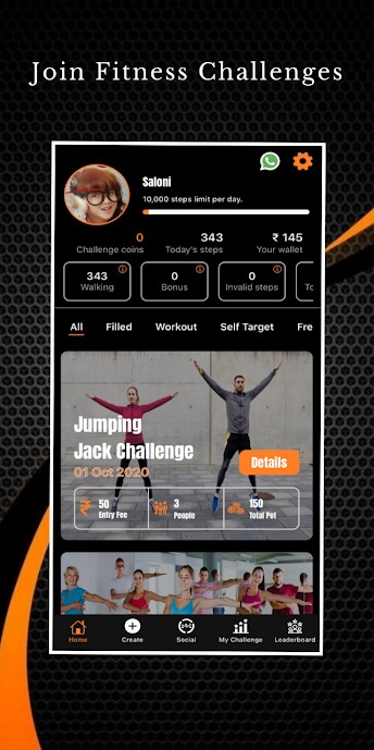 Buzzinga is a reward-based fitness challenge app, where you can earn rewards by participating and winning in different types of fitness challenges like walking challenges, workout challenges and dance challenges. This app helps you in building new fitness habits by participating in walking challenges.