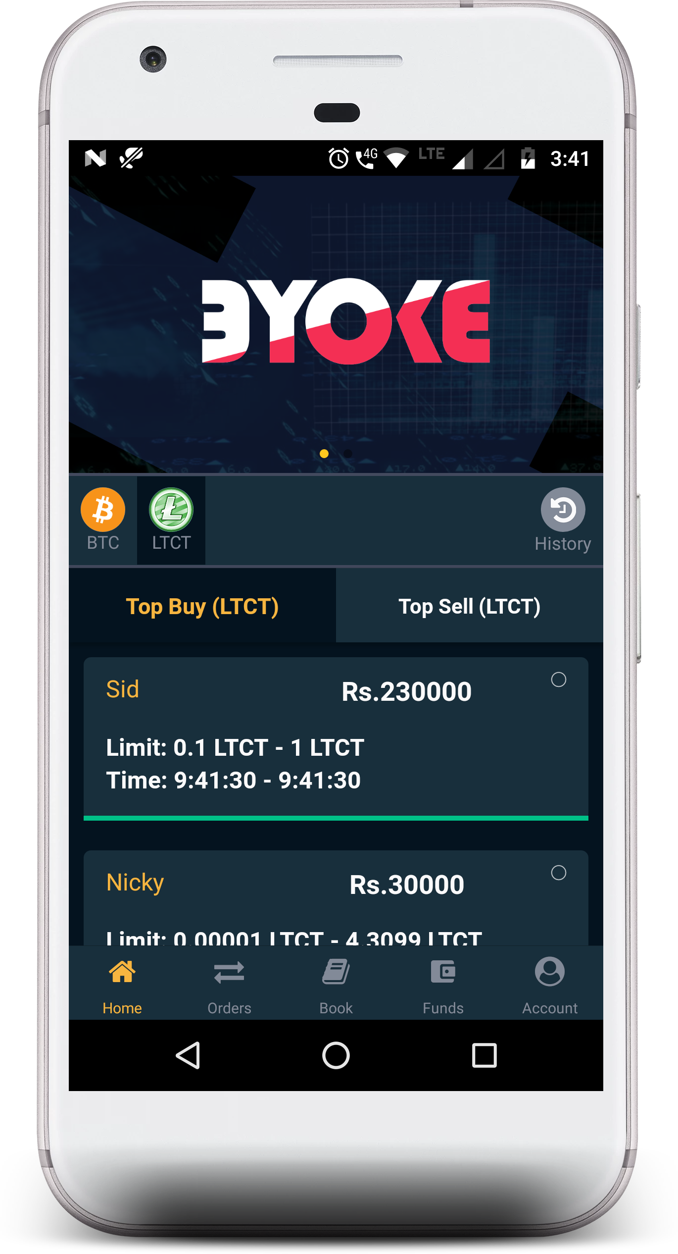 Byoke is a peer to peer cryptocurrency exchange platform. You may exchange cryptocurrencies like bitcoin, Litecoin, Ethereum etc in India with INR using your Indian Bank Account.