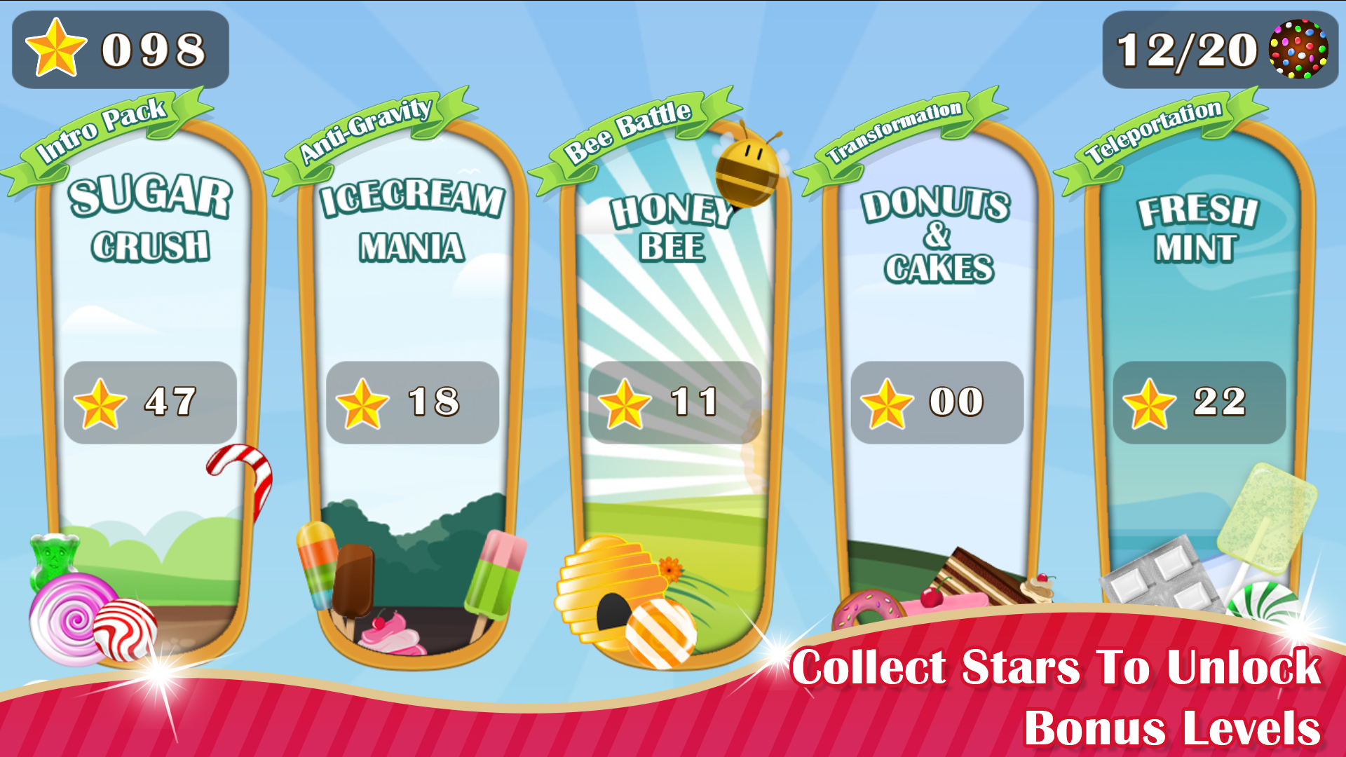 • Finish all levels with 3 stars to unlock extra bonus levels