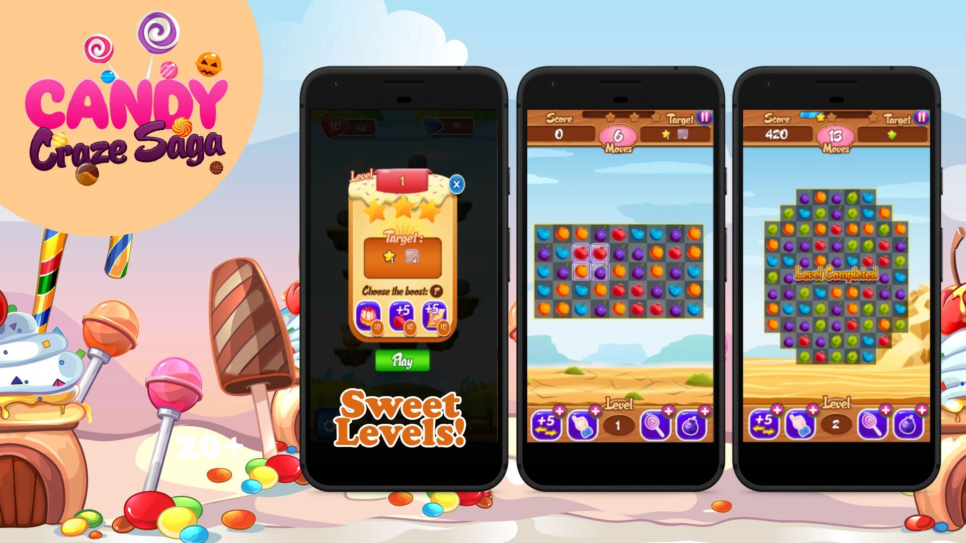 Step into the world of Candy Craze Saga, the ultimate match-3 puzzle game! Enjoy endless fun as you match, pop, and blast candies in this exciting puzzle adventure. Featuring 10 thrilling levels with more on the way, it's a sweet escape for puzzle lovers everywhere.