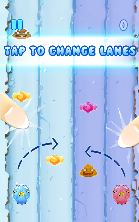 • ONE PIG, TWO PIGS…Control two pigs and guide them through 4 lanes of obstacles (doo) and candy. No candy must go uneaten.