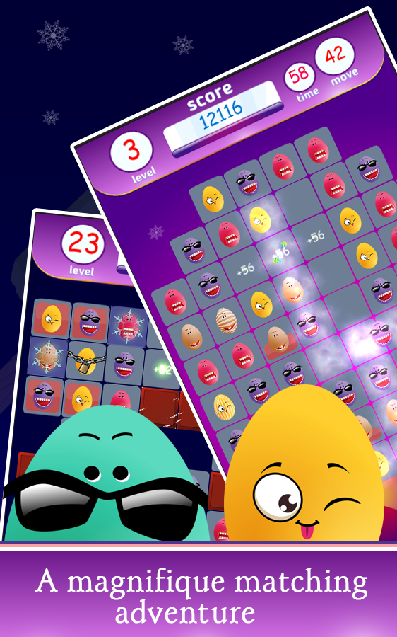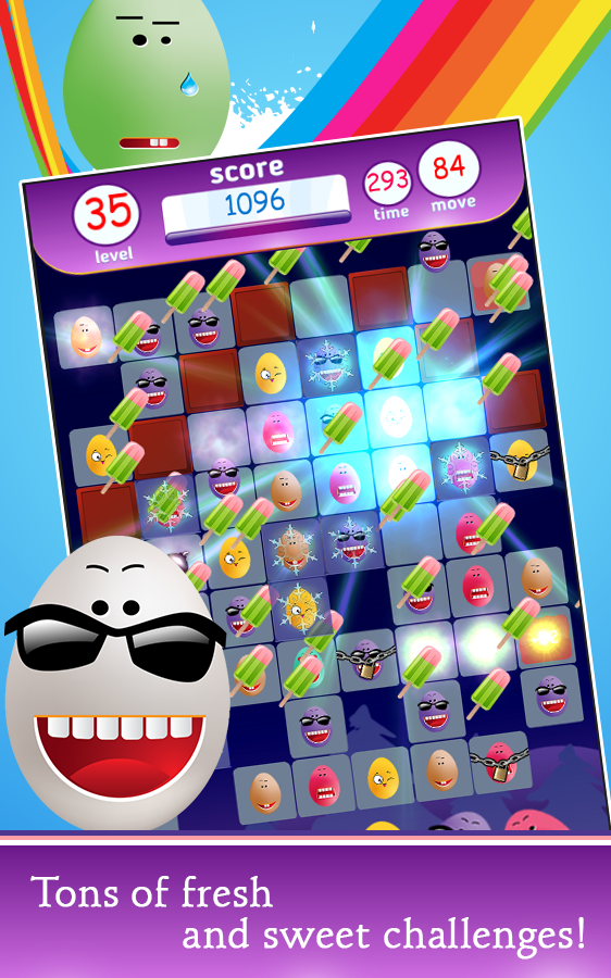 - Match three or more identical eggs.